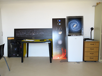 Graphiken für die Besucher des public stargazing aufgehängt.