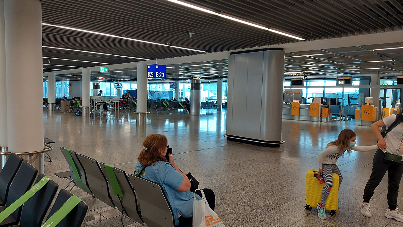 Anreise war wegen Corona noch etwa mühsam, Maske in der Bahn, im Flughafen