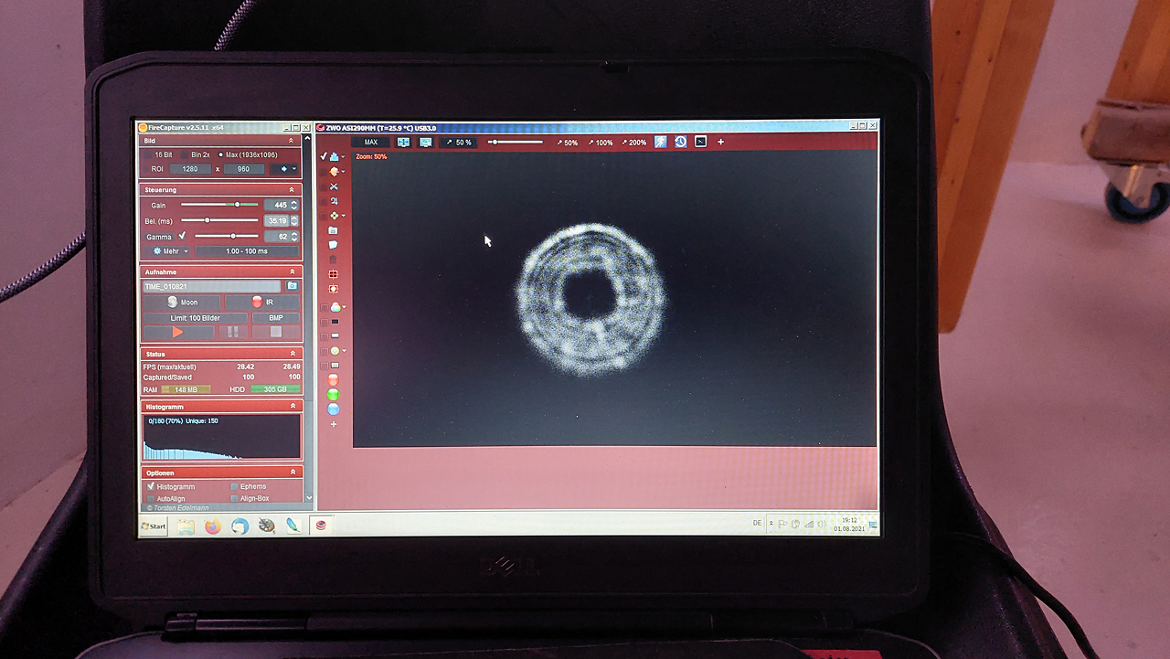 Letzter Versuch die Flatfieldkamera zu justieren - vegeblich |