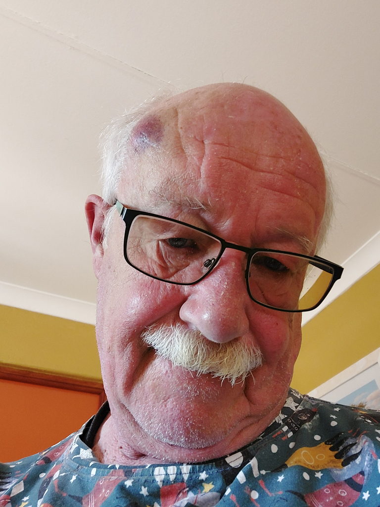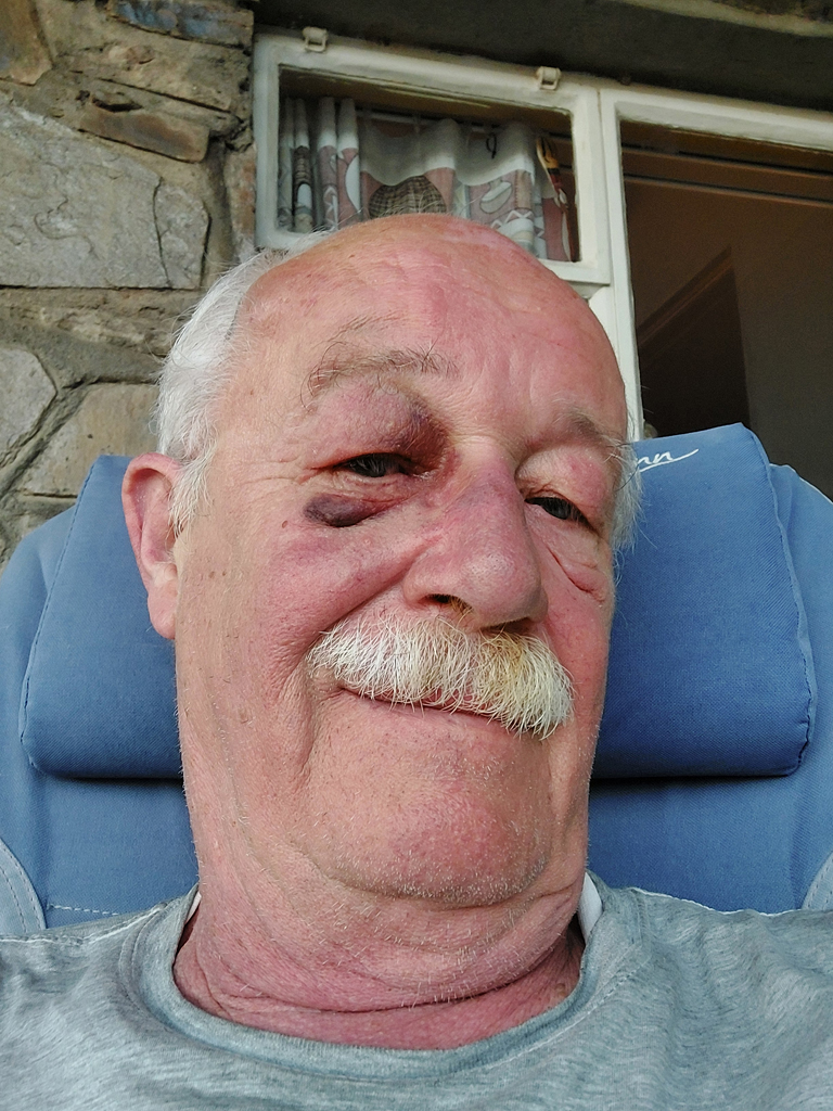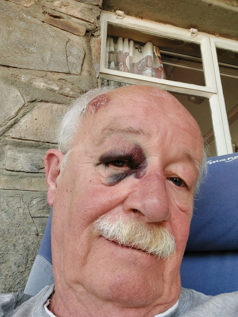 Blackout mit dicker Beule und folgendem Bluterguß am Auge. Keine