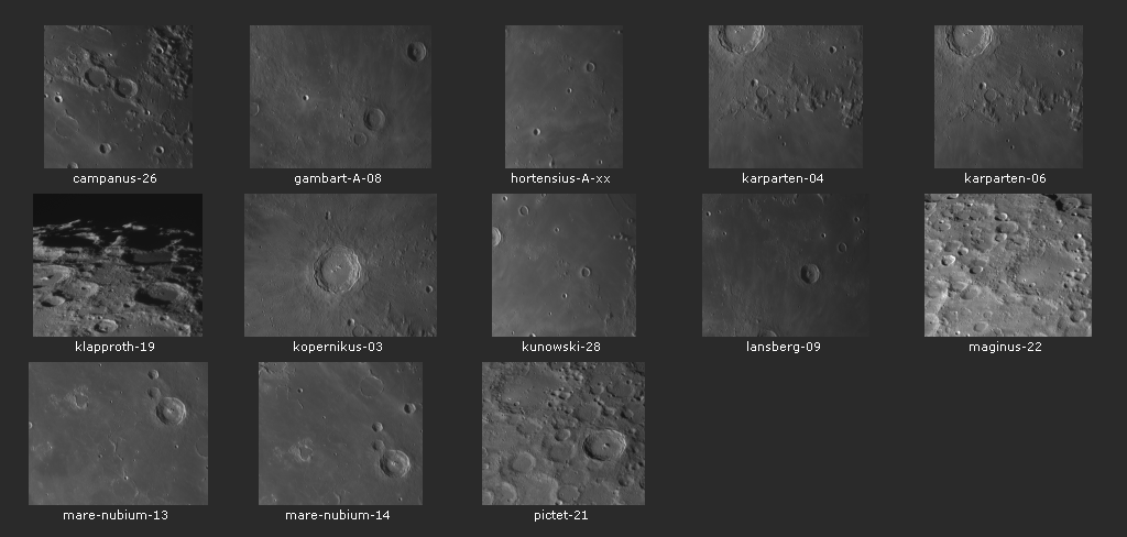 Mondbilder, aufgenommen in den Monaten Juli und August 2022 mit dem Celestron 14 in der 4m Onjala Kuppel. Die Bilder umfassen Detailbilder einzelner Mondregionen und einige Mosaike. Es sind die "best of" Bilder aus dem Jahr 2022