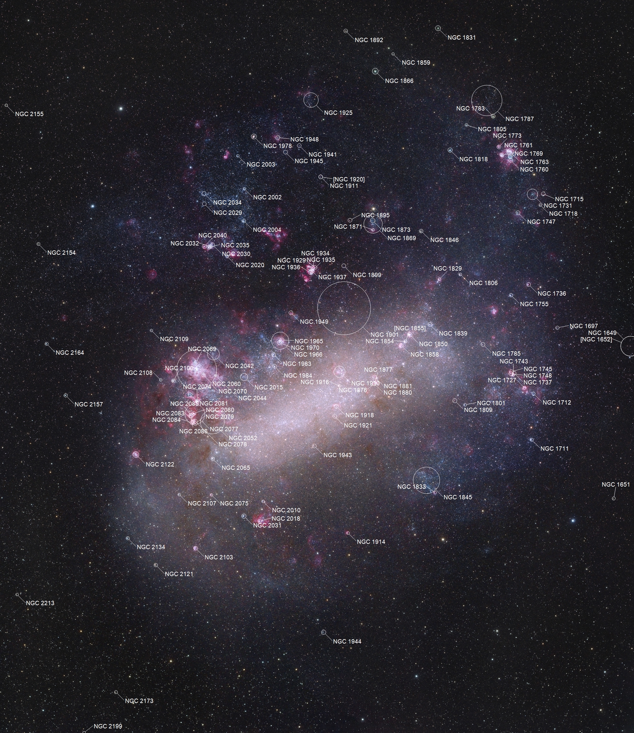 LMC aus dem NGC- und IC Katalog. Dazu kommen noch einige weitere