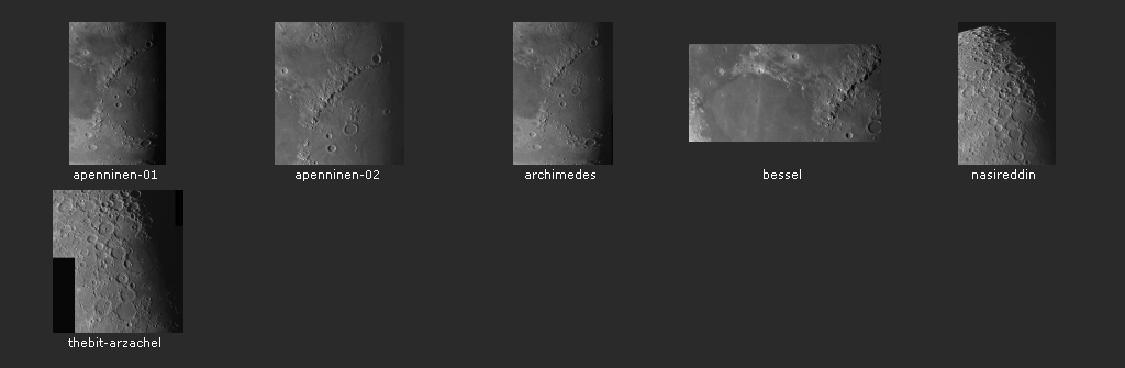 Die Filenamen benennen die ungefähren Mondformationen in der Bildmitte.
