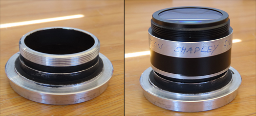 Bilder zeigen den Flansch für den Fokal Reducer (links) und rechts beide