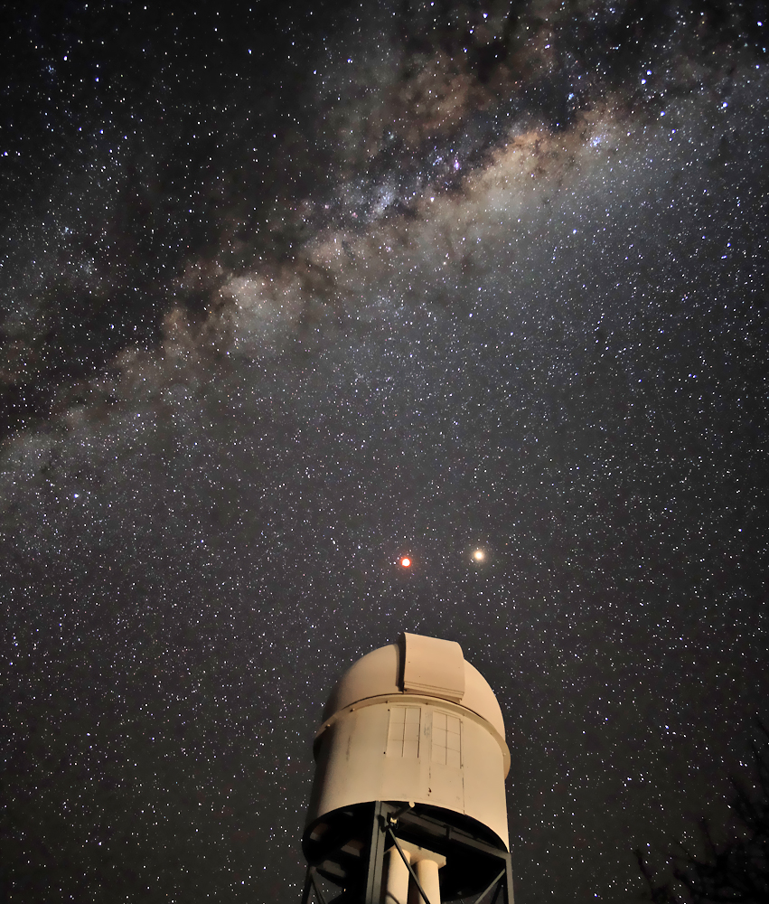 der Lodge. Das Bild rechts oben zeigt Mond, Mars und die Milchstraße vor