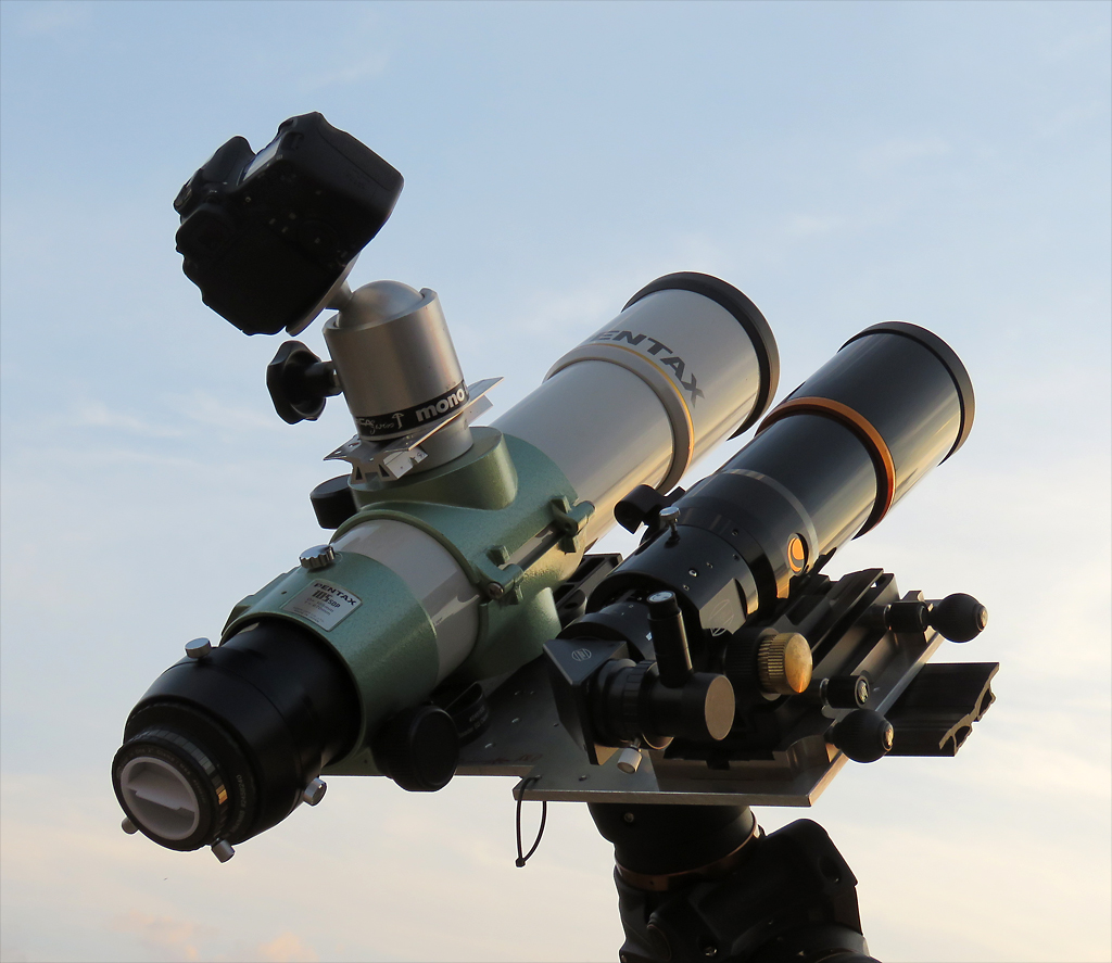 Refraktor (links daneben ein Celestron 80mm Onyx). Die Montierung läuft so