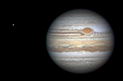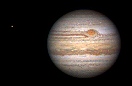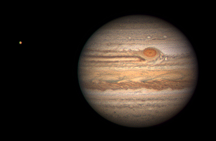Bild rechts zeigt den Vergleich des scheinbaren Durchmessers von Jupiter zur