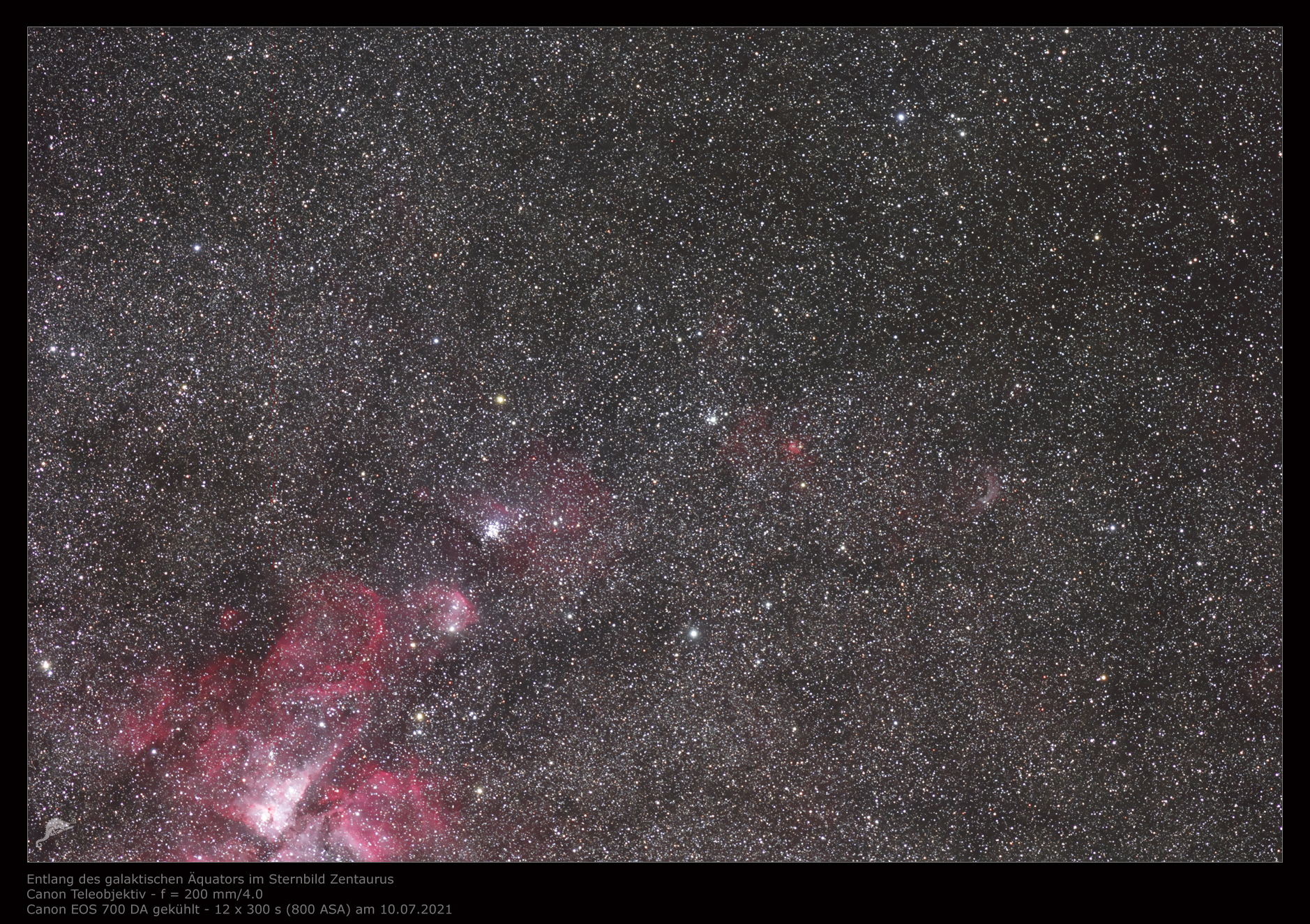 4.3 Grad südlich des galaktischen Äquators. Links unten im Bild