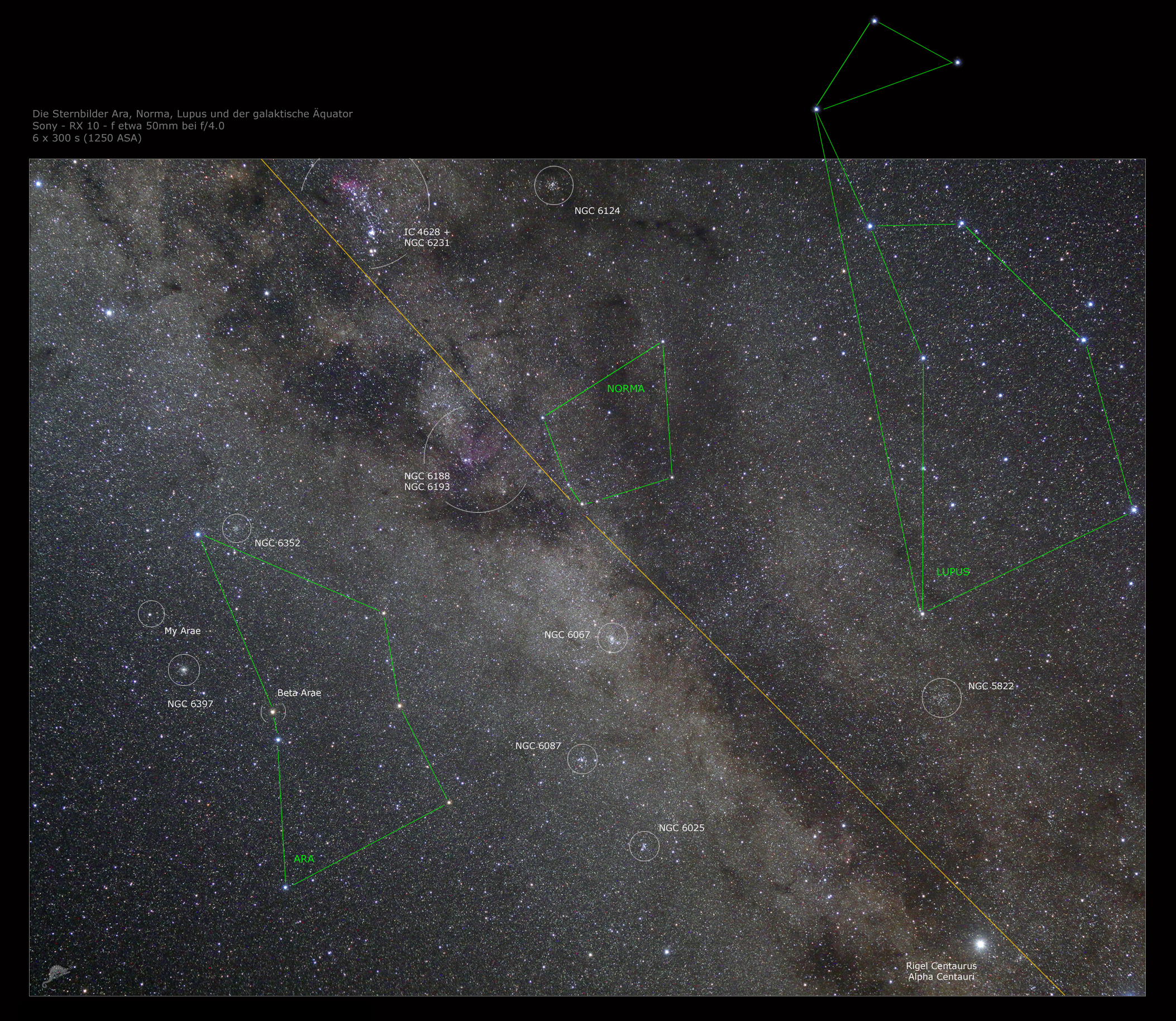Ara, Norma und Lupus zusammen mit den hellsten galaktischen Deep Sky