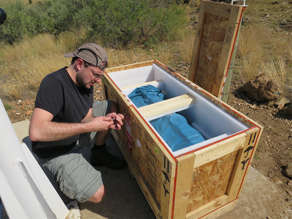 Windheok geliefert. Mitte April haben wir das Teleskop dann nach Onjala geholt,
