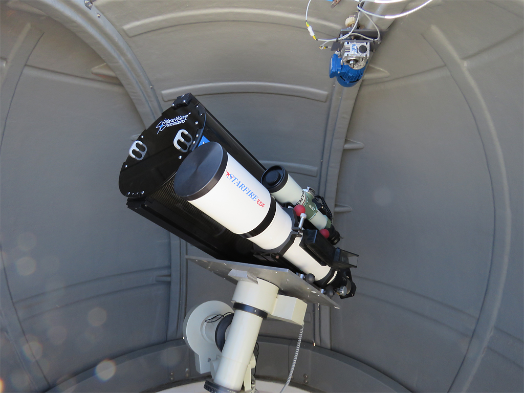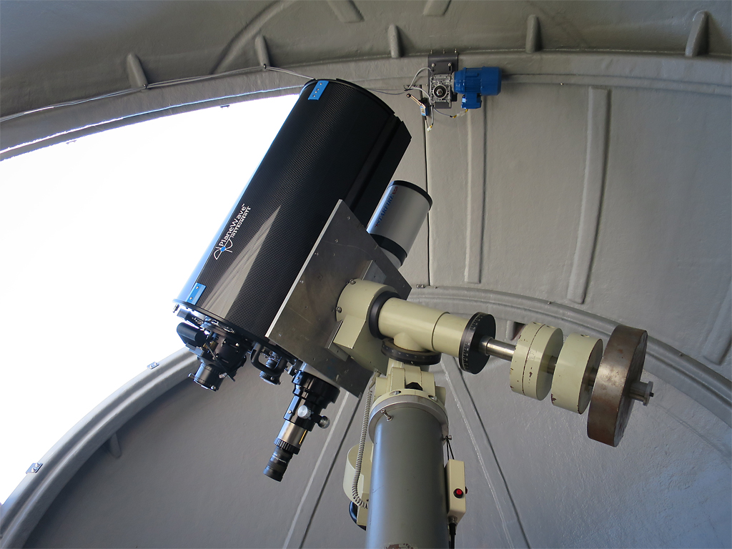 Planewave auf einer Astro Physics GTO 1200 Montierung. Links daneben ein