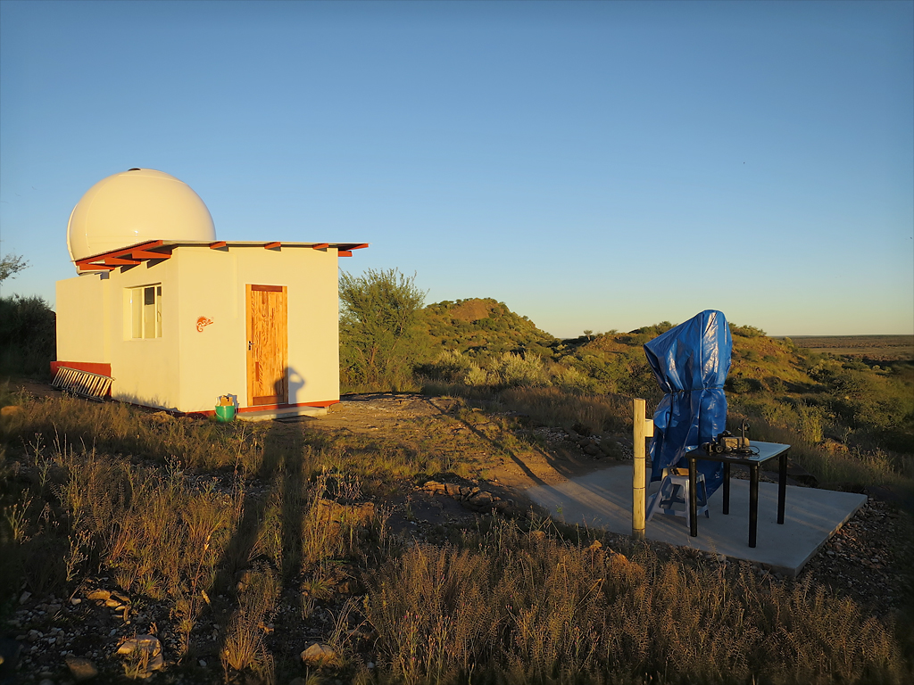 Bild rechts zeigt die 3 Meter ScopeDome Kuppel des Onjala Observatory. Der