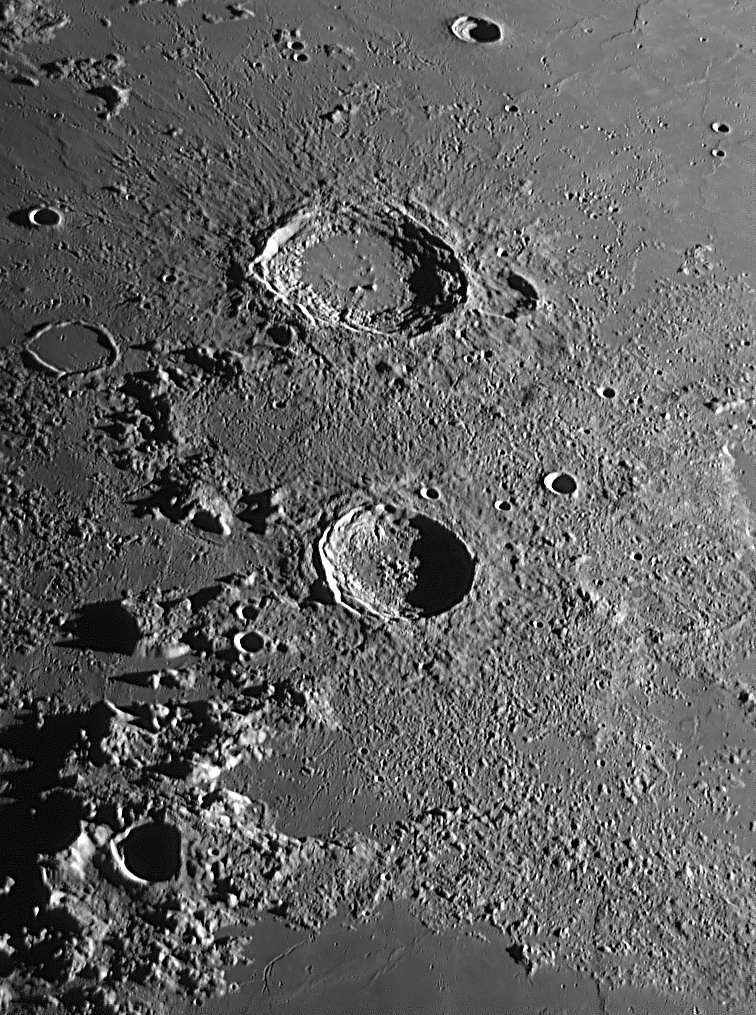Bild mit sehr hohem Kontrast bearbeitet, Rillensystem im Krater