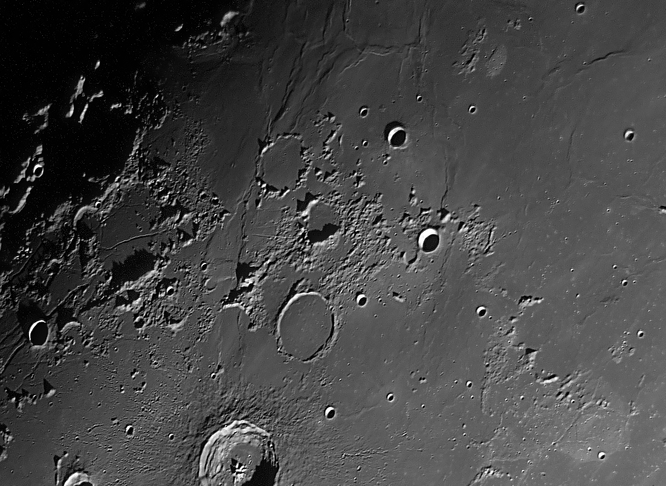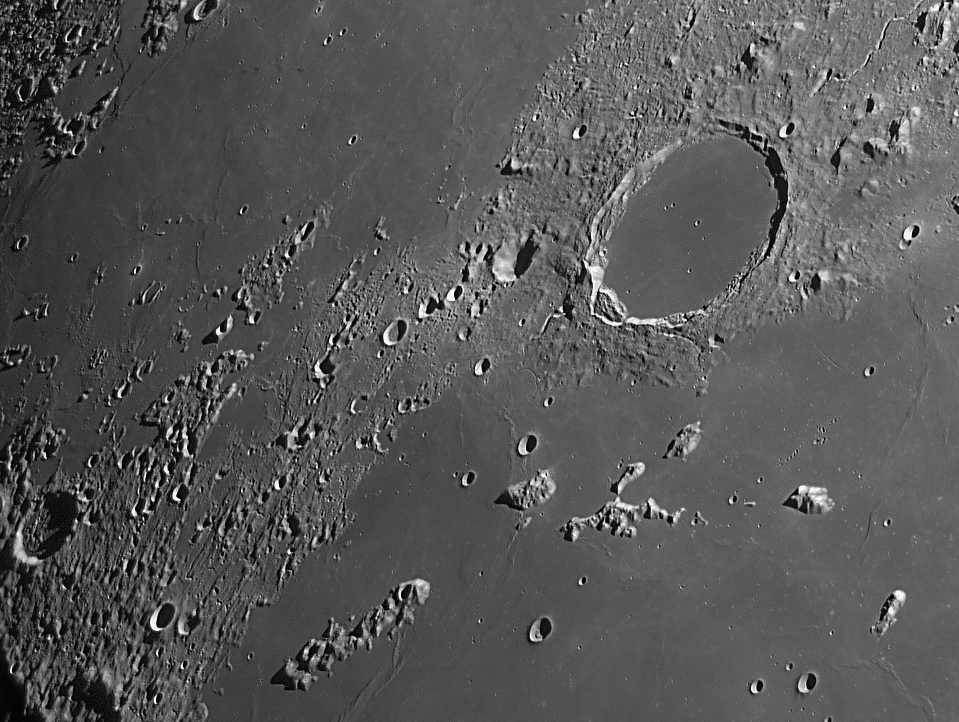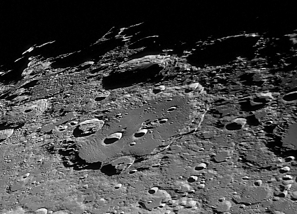 22:49 Posidonius, LeMonnier bei diesen Beleuchtungsverhältnissen werden viele Kleinkrater in LeMonnier sichtbar 25