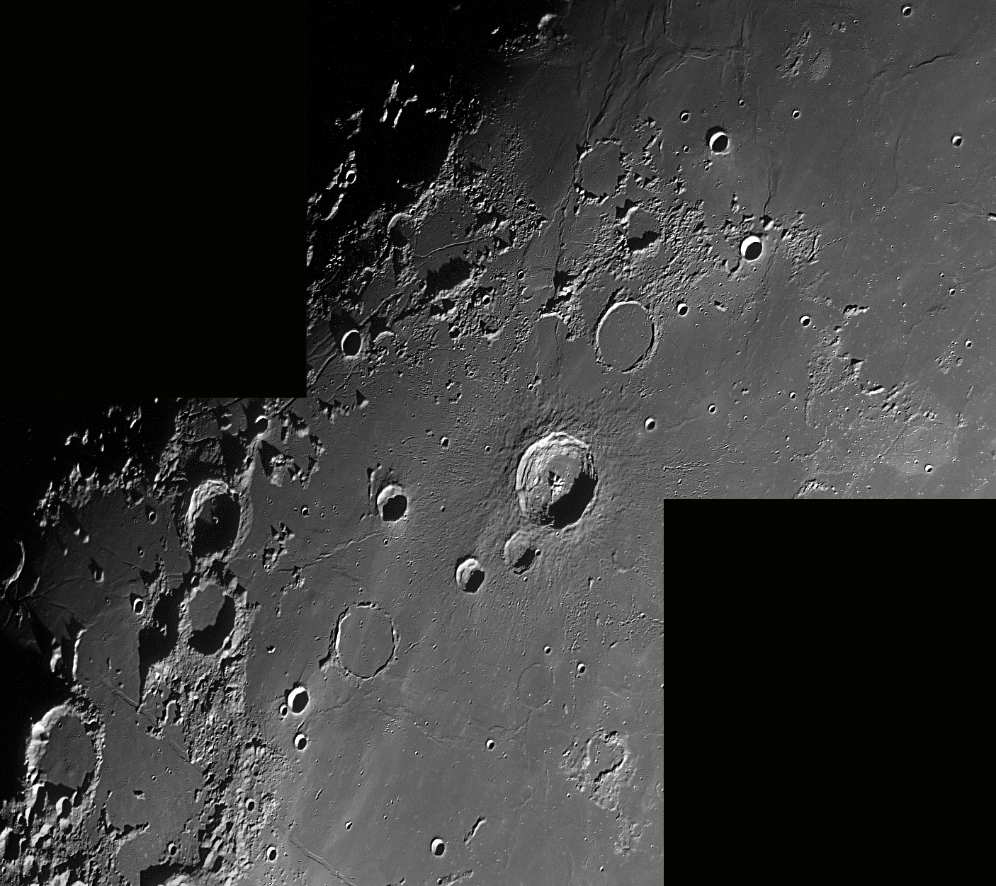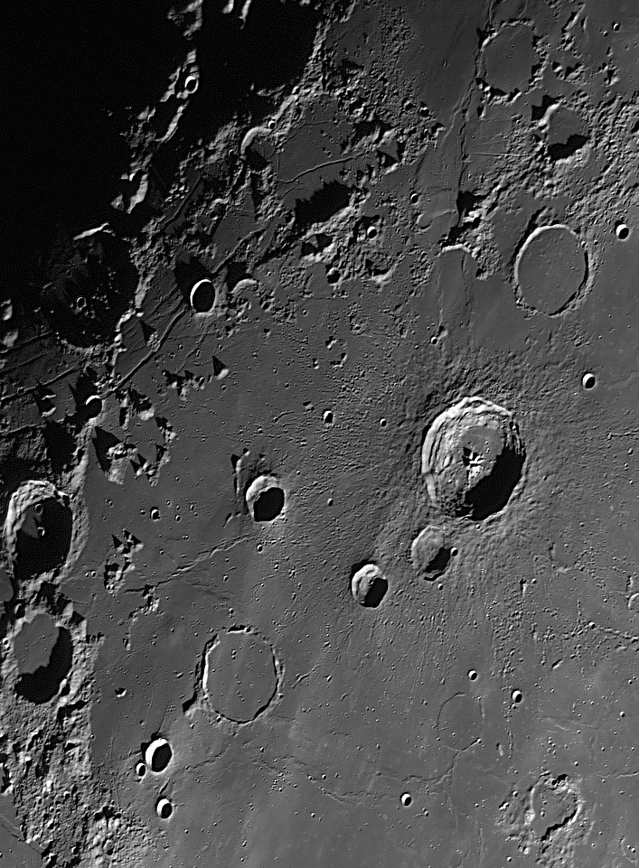 20-42+43+44+45+46 Kopernikus. Erasthostenes 5 Segmente. Südöstlich von Kopernimus (ca. 6° N, 16° W, direkt südlich von Stadius) befindet sich ein Feld mit weiteren lunaren Domen. Eine ausführliche Beschreibung findet sich auf der Webseite von M. Clark, hier auch im download als pdf-file.