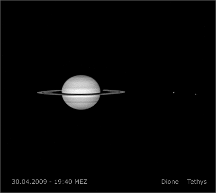 oben: Saturn am 30.04.2009 - 19:46 MEZ mit Titan, Tethys,