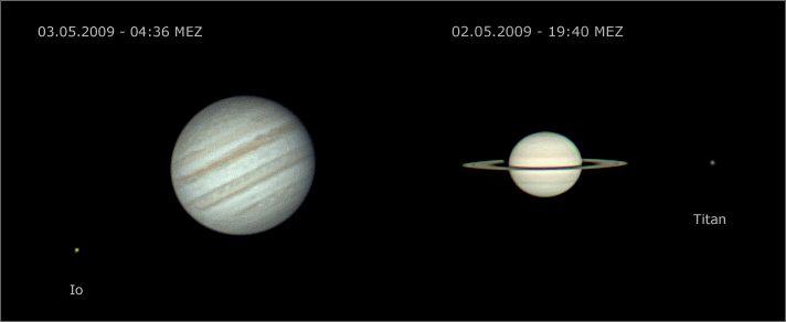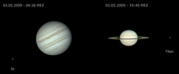 Größenvergleich Jupiter/Saturn im Mai 2009 |