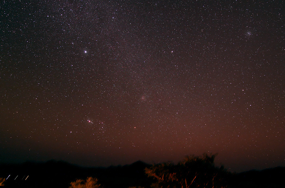 Orion, Großer Hund und LMC in Abenddämmerung,