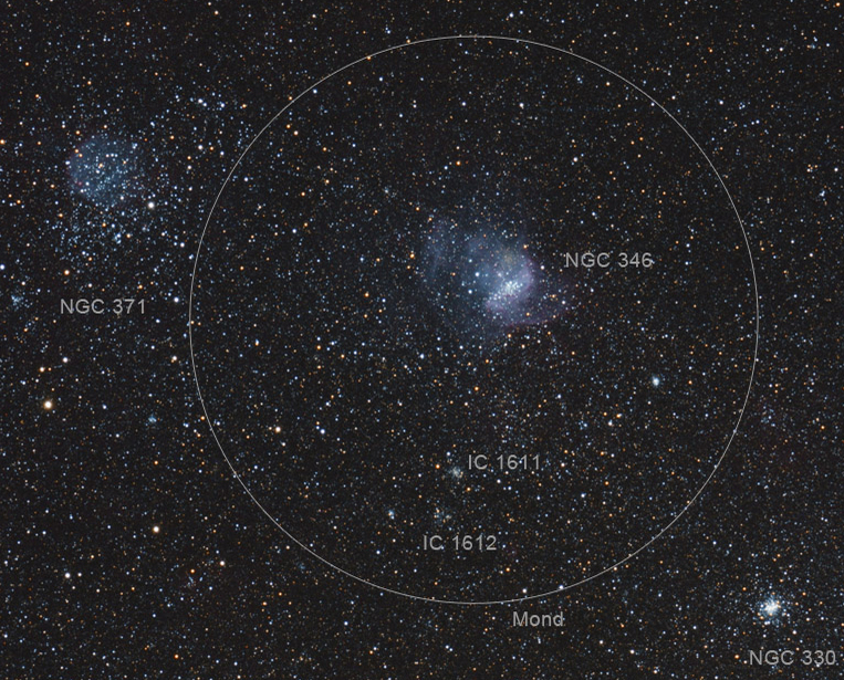 Der Gasnebel NGC 346 in der Bildmitte ist mit einem