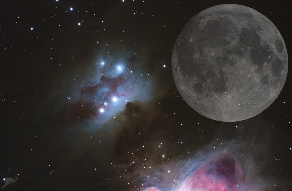 lower part of the image, a Moon-sized area of reflection nebulas can be found.