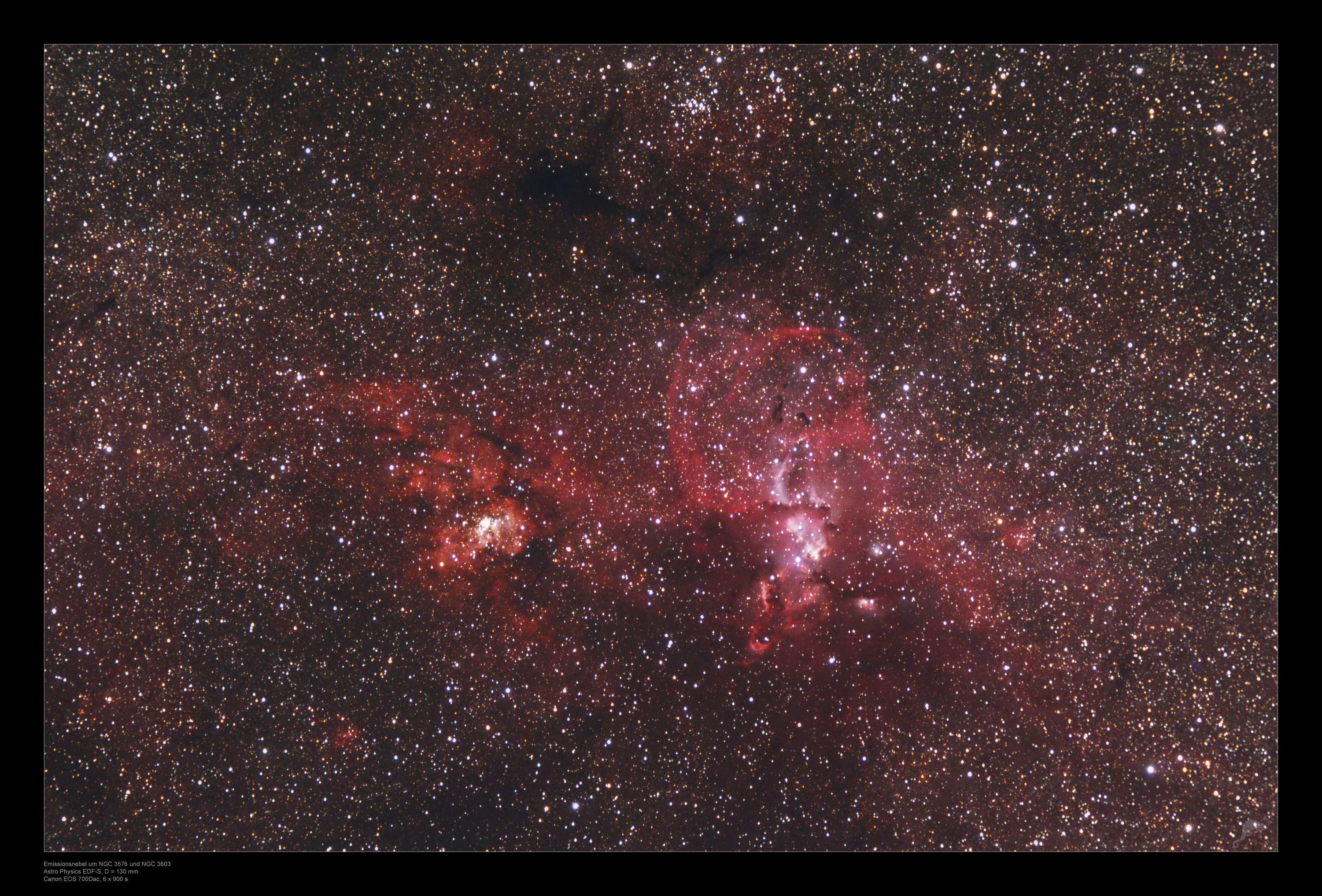 NGC 3603 and NGC 3576 - Spectacular Landscape of Star