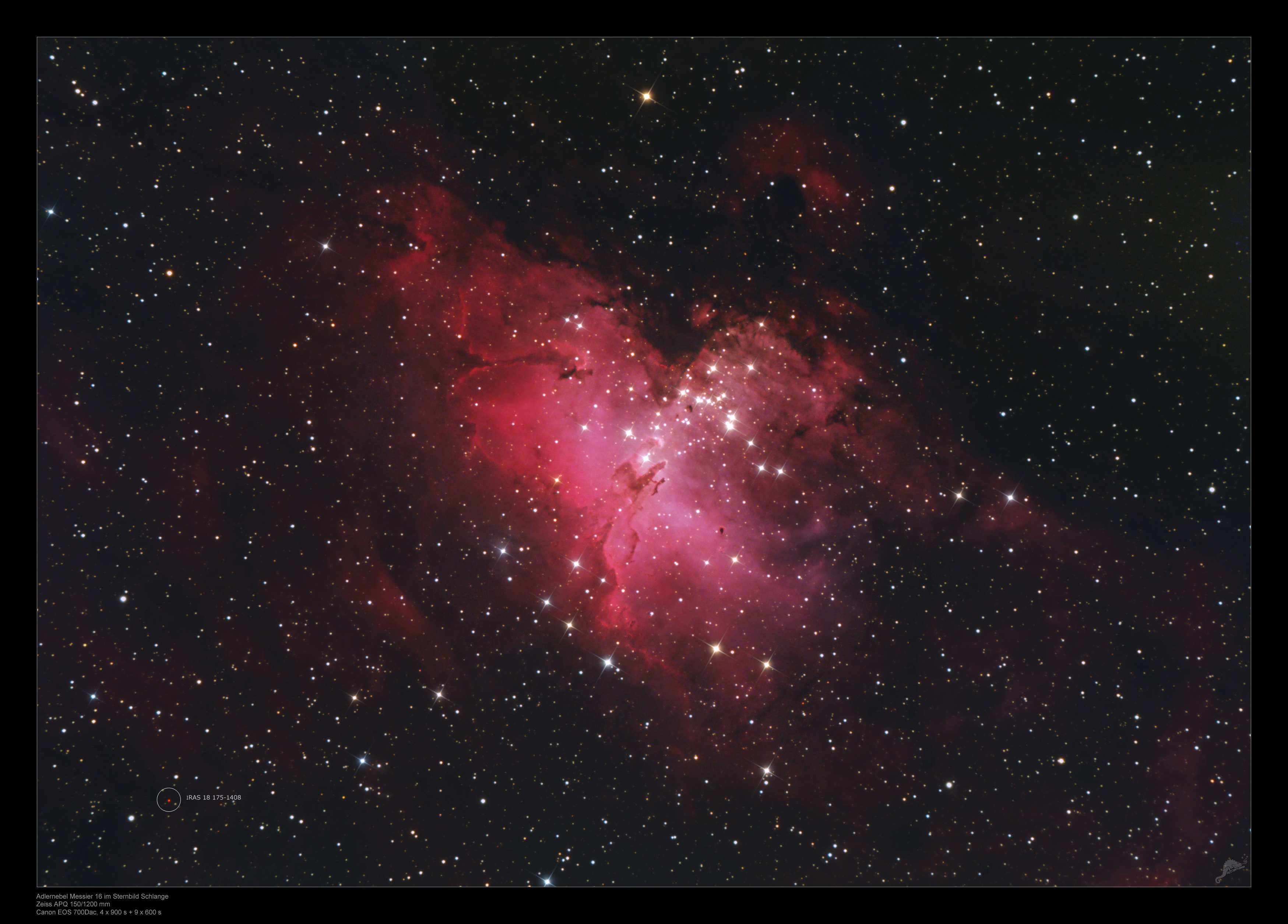 absolute extent of the shown nebula is about 140 light years. M 16 covers an