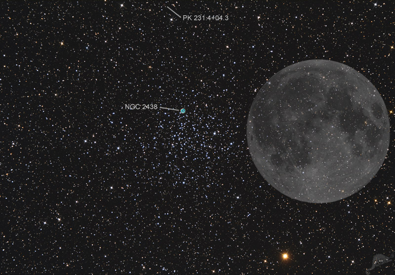 planetary nebula NGC 2438. The overlay of cluster and nebula is a geometric