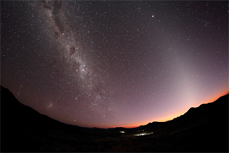 Milky way and Zodiacal light in late twilight (Rooisand) |