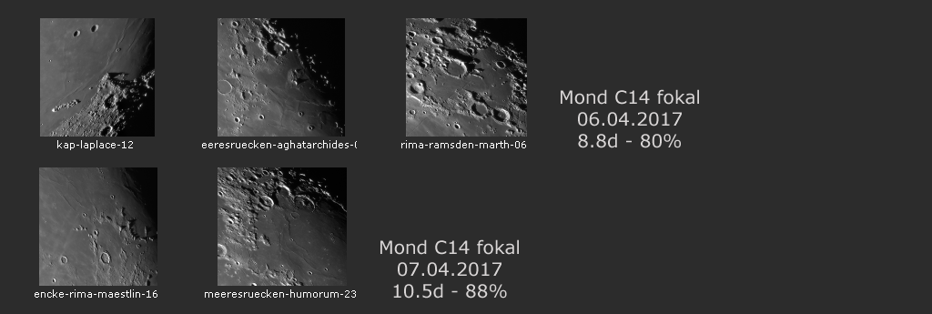 image details The picture Kap La Place shows a "dramatic shadow cast by the top of the Cape. Directly under the shadow top lie the lunar Dome La Place 5 and 6. |