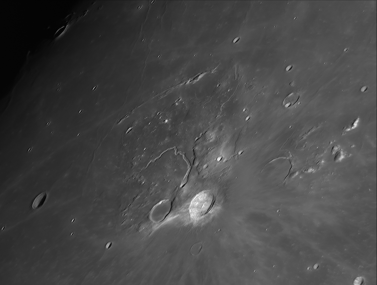 system of the young crater Kepler. The polygonal form of Kepler and Encke is