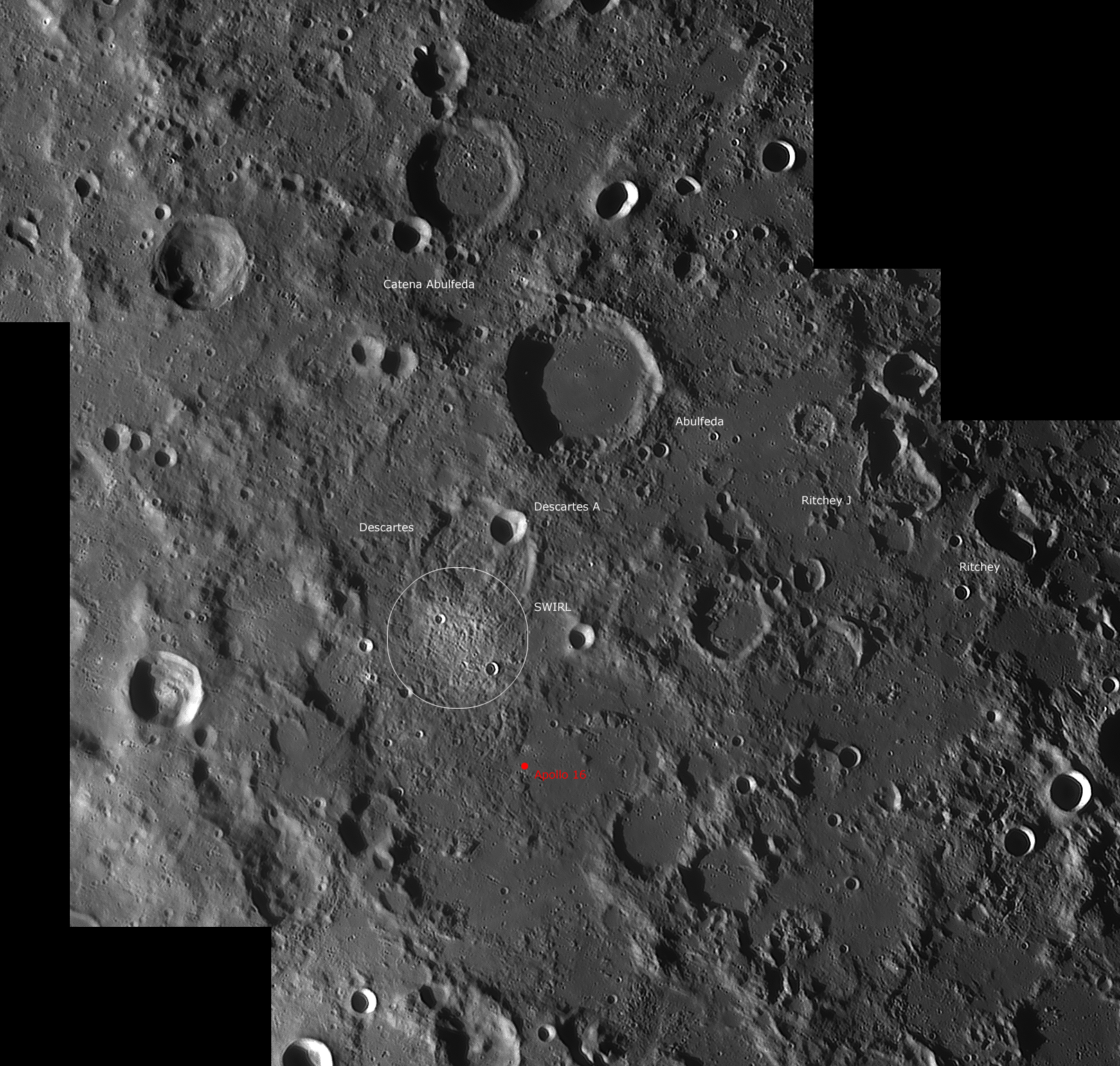 shows the region of the Descartes Highlands, landing area of the Apollo 16