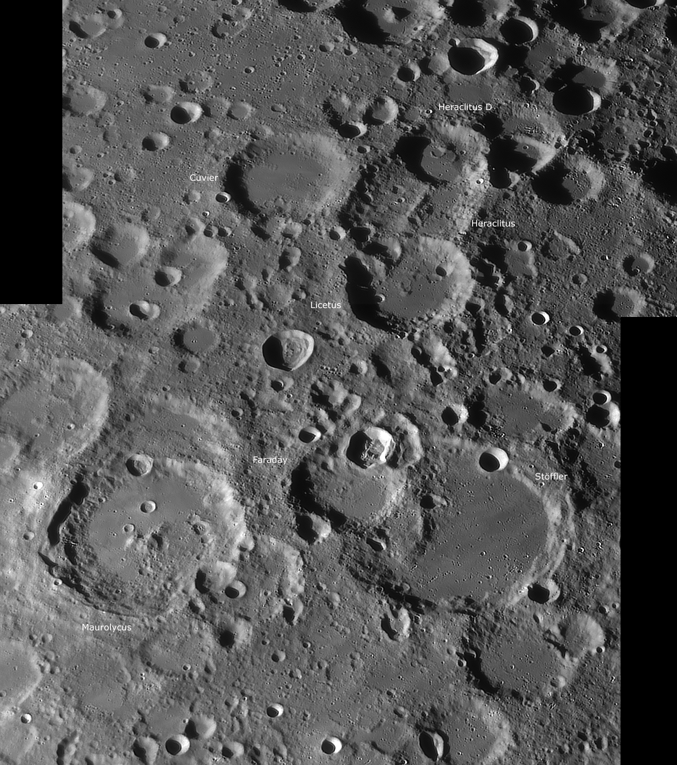 Stöffler lies the elongated crater Heraclitus, which is certainly the