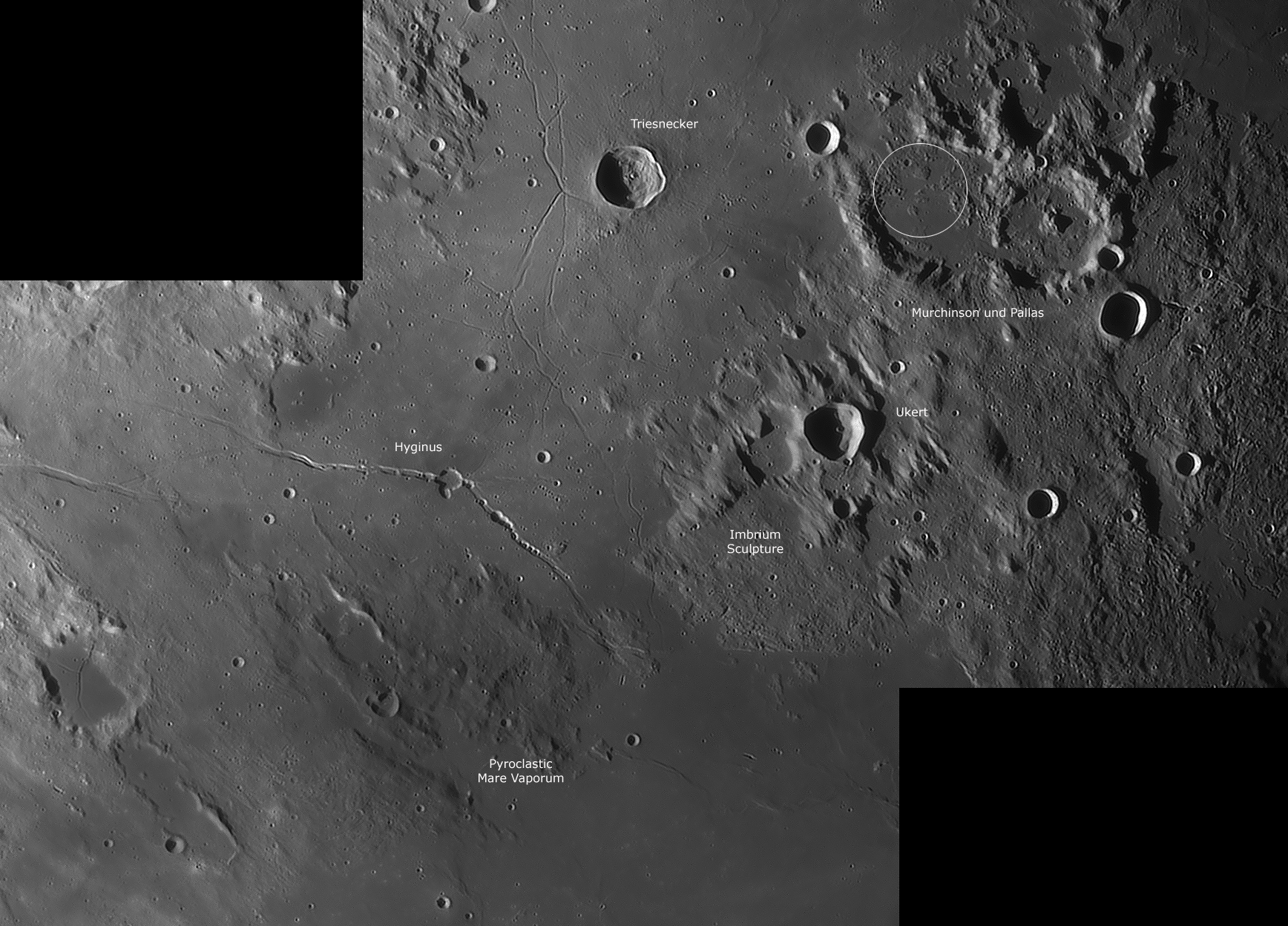 the large "pyroclastic" Mare Vaporum region, which is covered with volcanic
