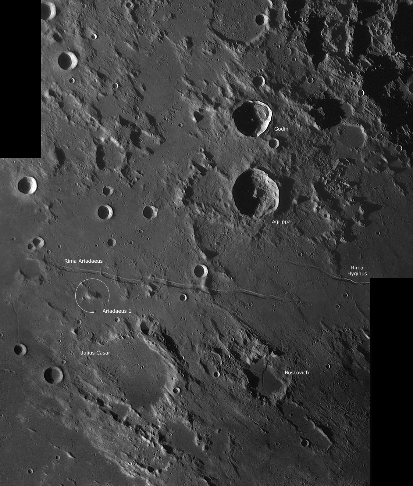 of Rima Ariadaeus lies the unusually large shield volcano Ariadaeus 1 with 28 x