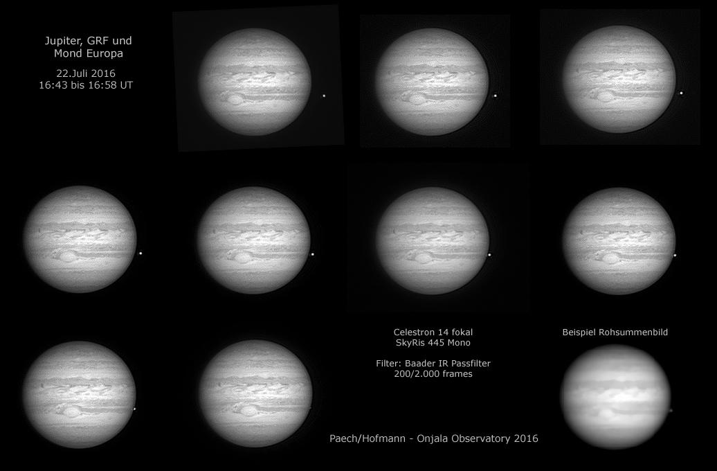 shadow of Ganymede. The pictures on the left and in the middle were taken