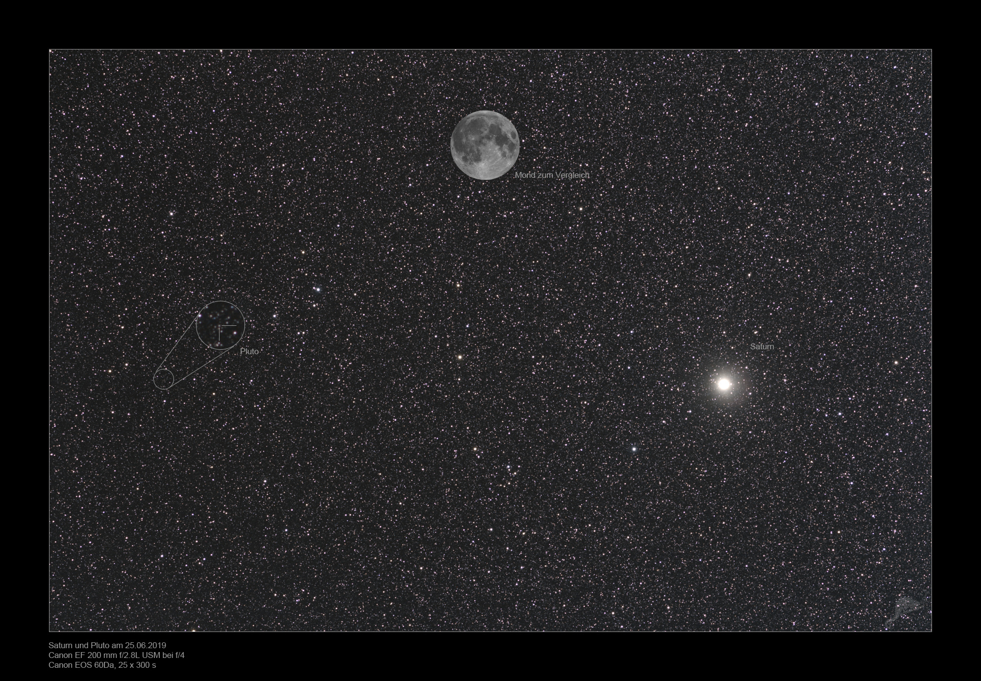 June 25, 2019, the two planets Saturn and Pluto were close enough together to