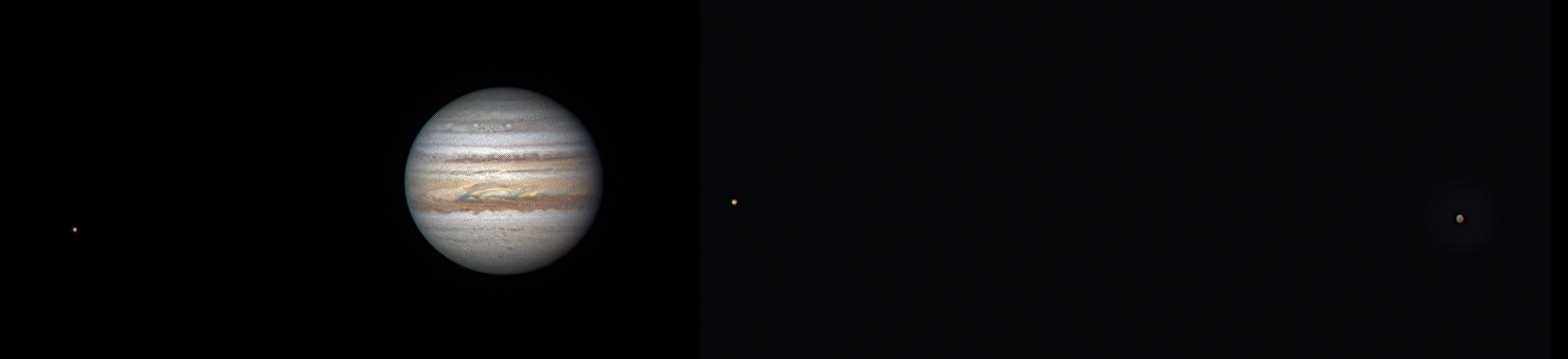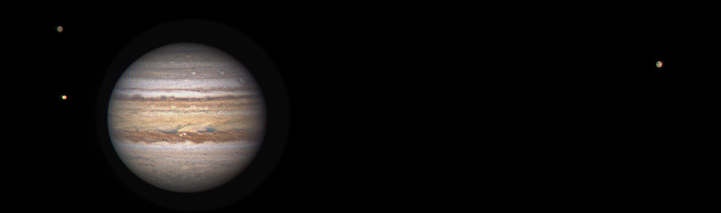 Jupiter mit den Monden Europa, Kallisto (links) und Ganymed (rechts),
