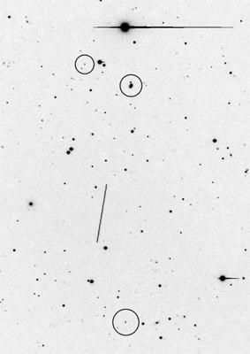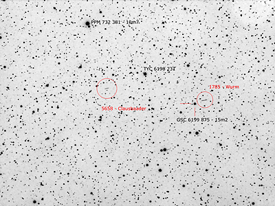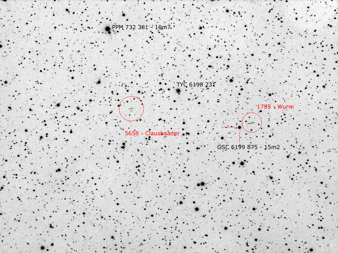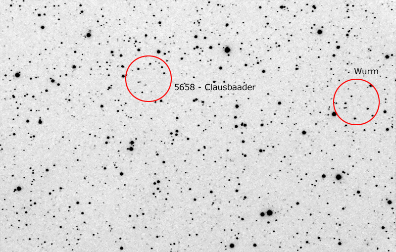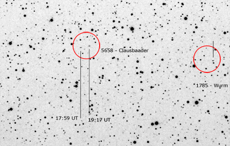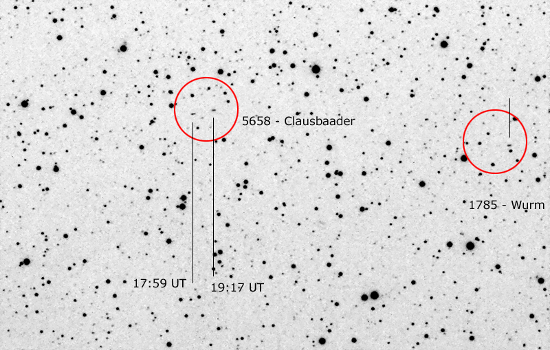 On the next evening three images, showing the minor planets Clausbader