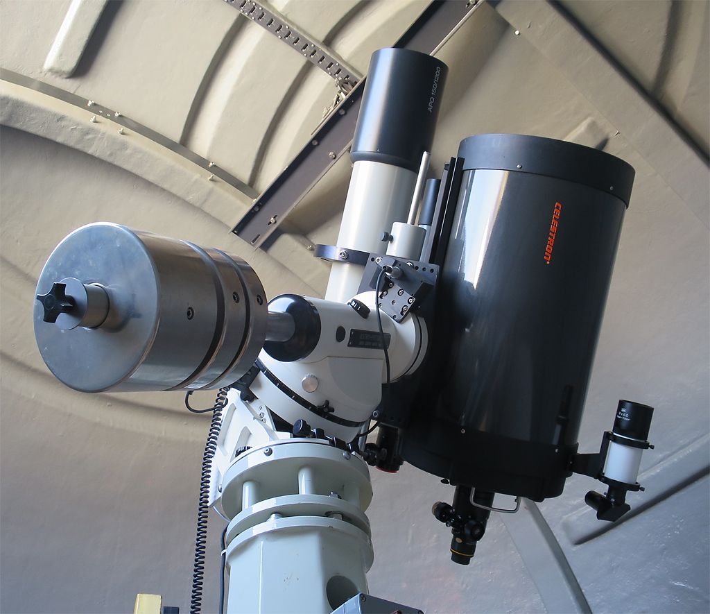 Celestron C14 on a Astrophysics 1200 GTO mount in the 4 meter dome.