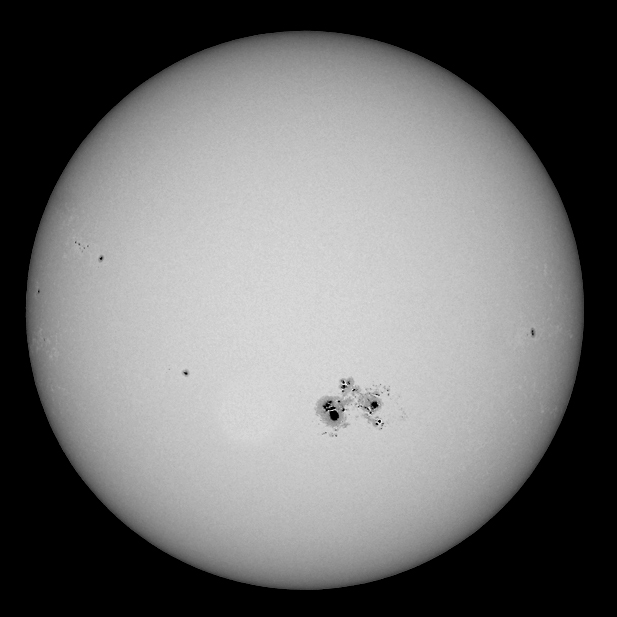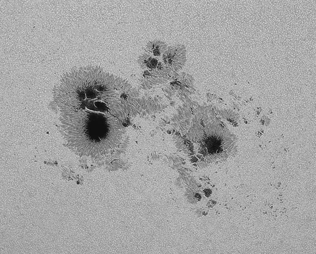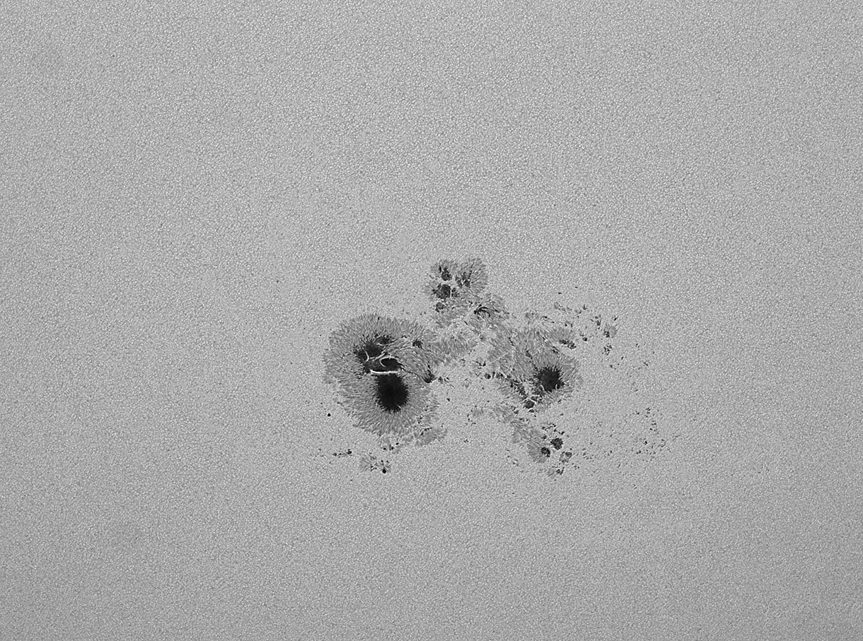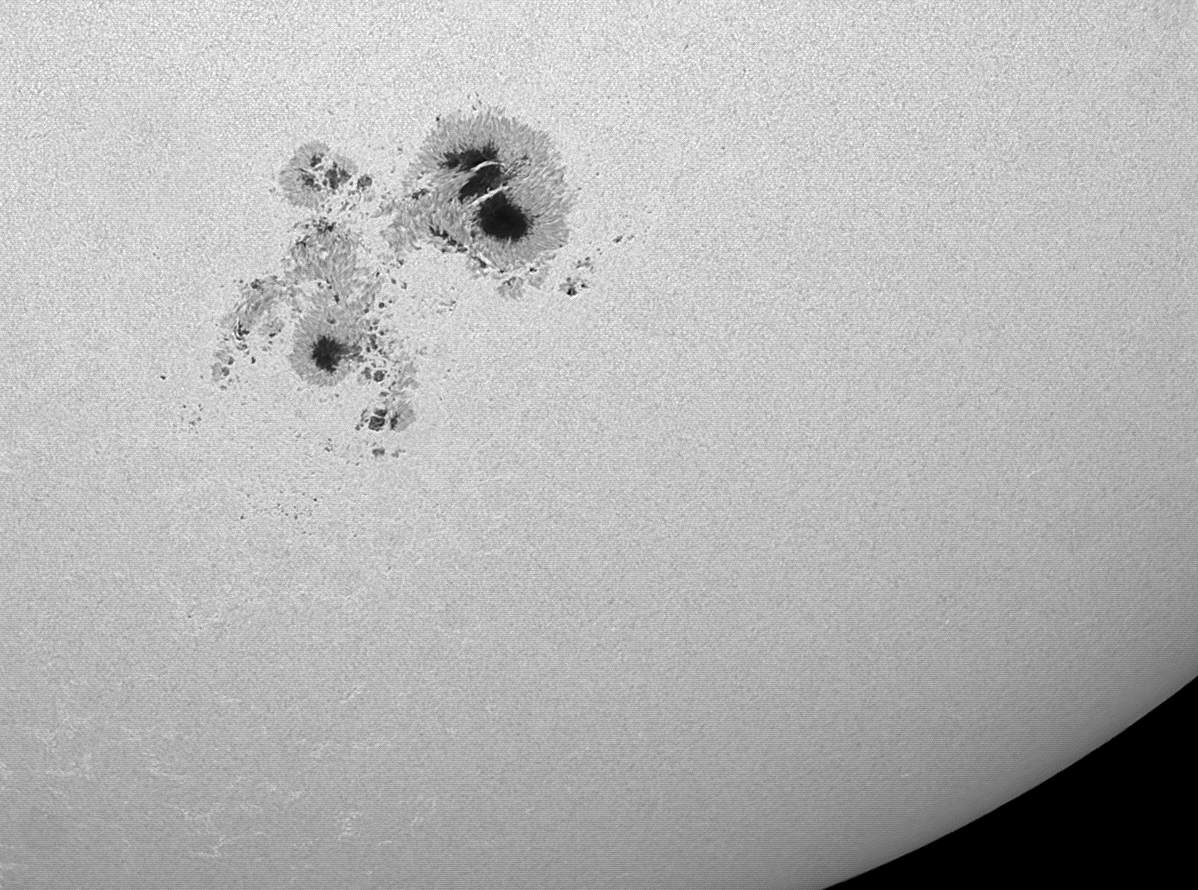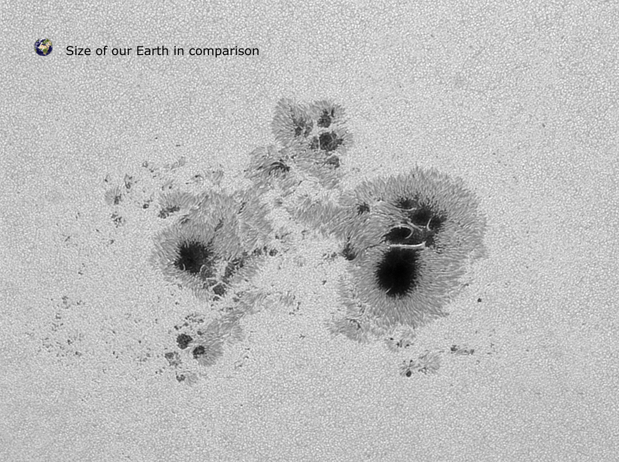 The image on the left shows the extension of the group compared to the whole solar disk. (Zeiss APQ prime focus, f=1.200mm),