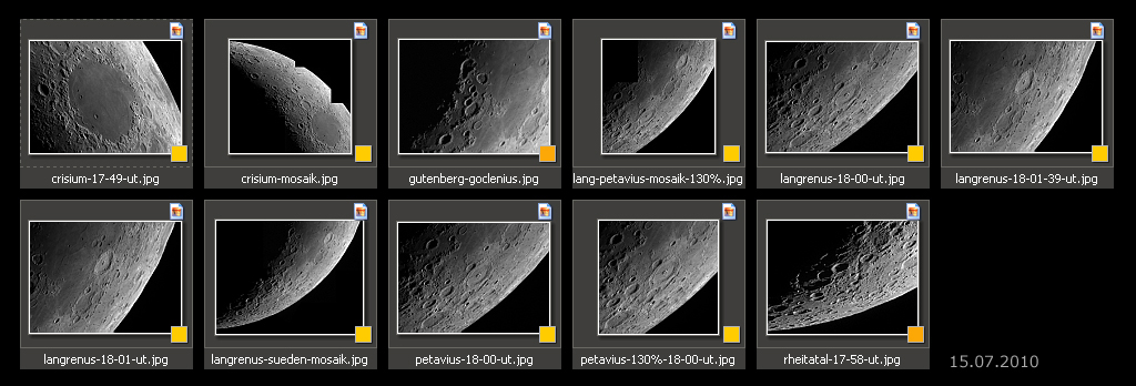 vom 14. und 15.7.2010 zeigen interessante Ansichten des Mare Crisium (2. Bild