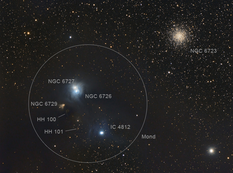 identification of the sky region around NGC 6723. The circle gives the diameter