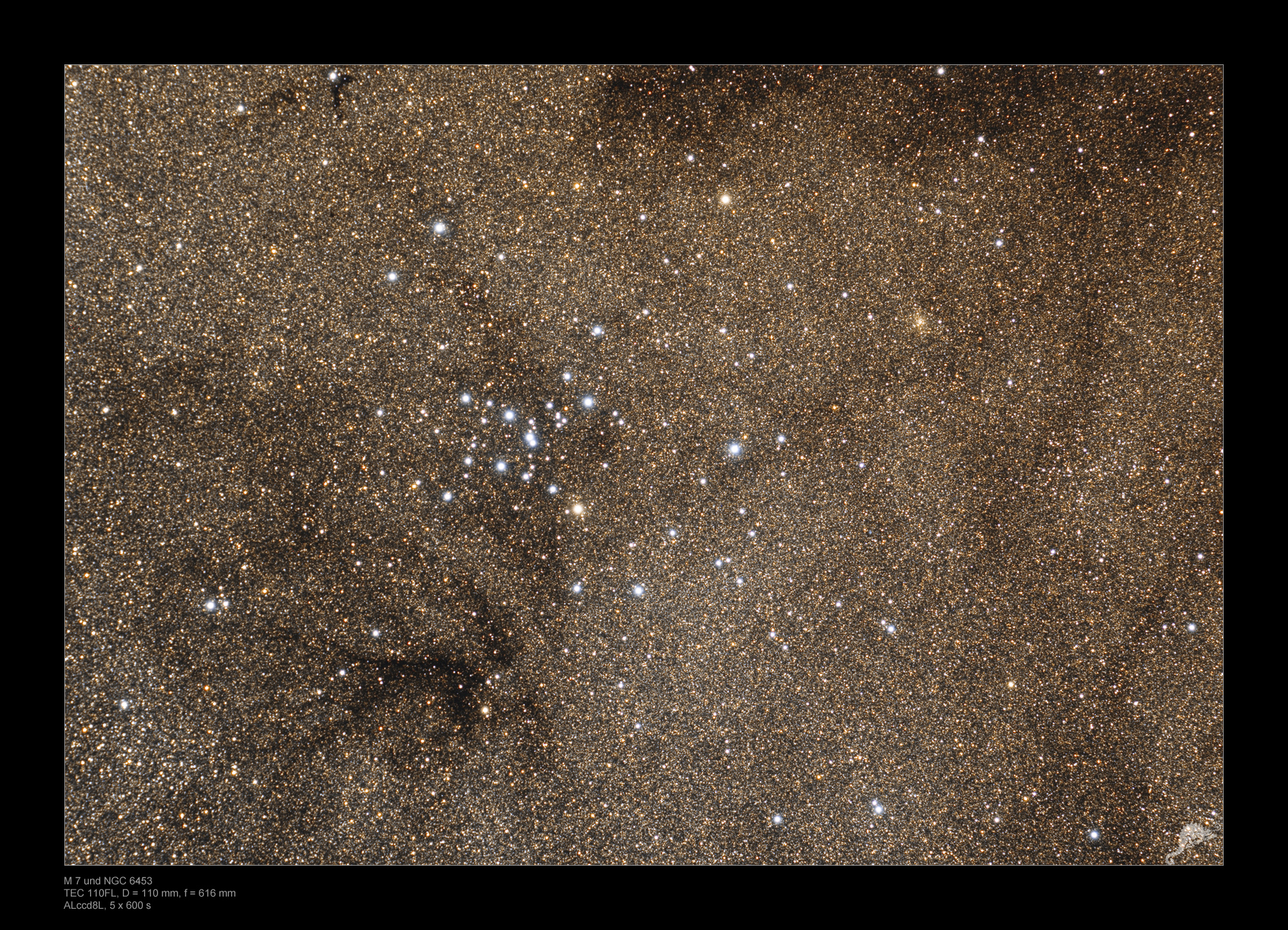 NGC 6444 is located in the west of M 7 and is hardly visible due to the dense