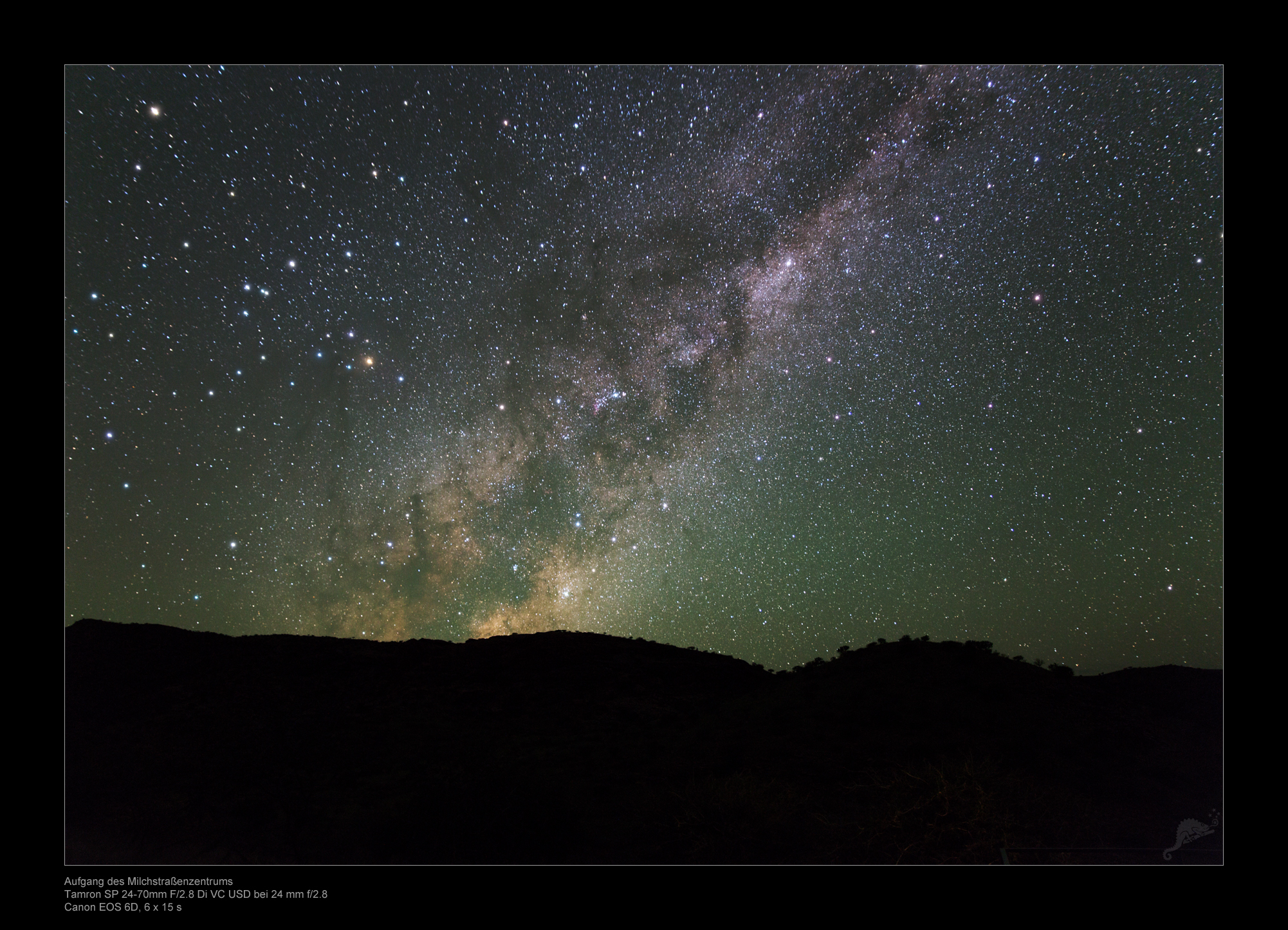Over the mountains of Rooisand, the center of the Milky Way