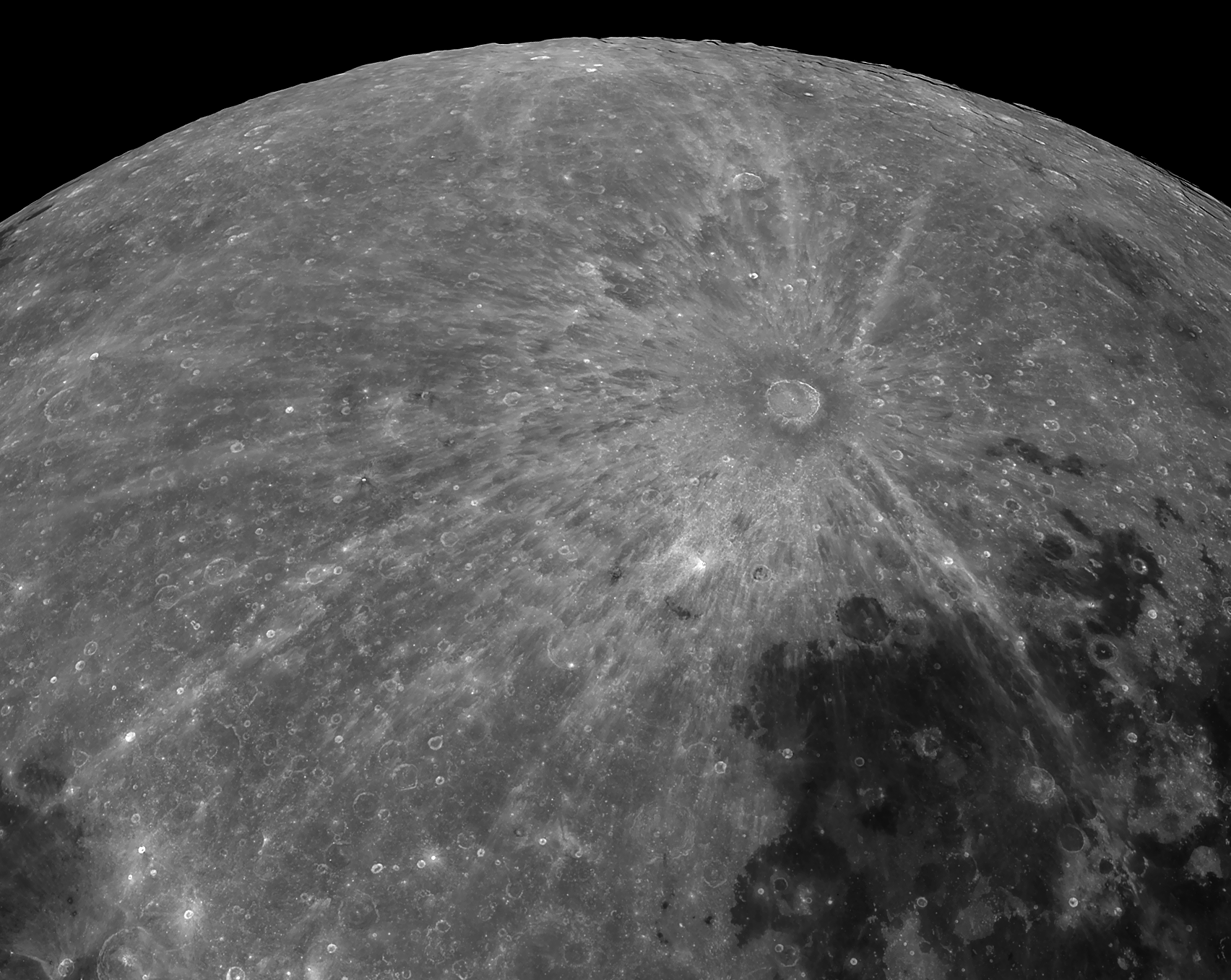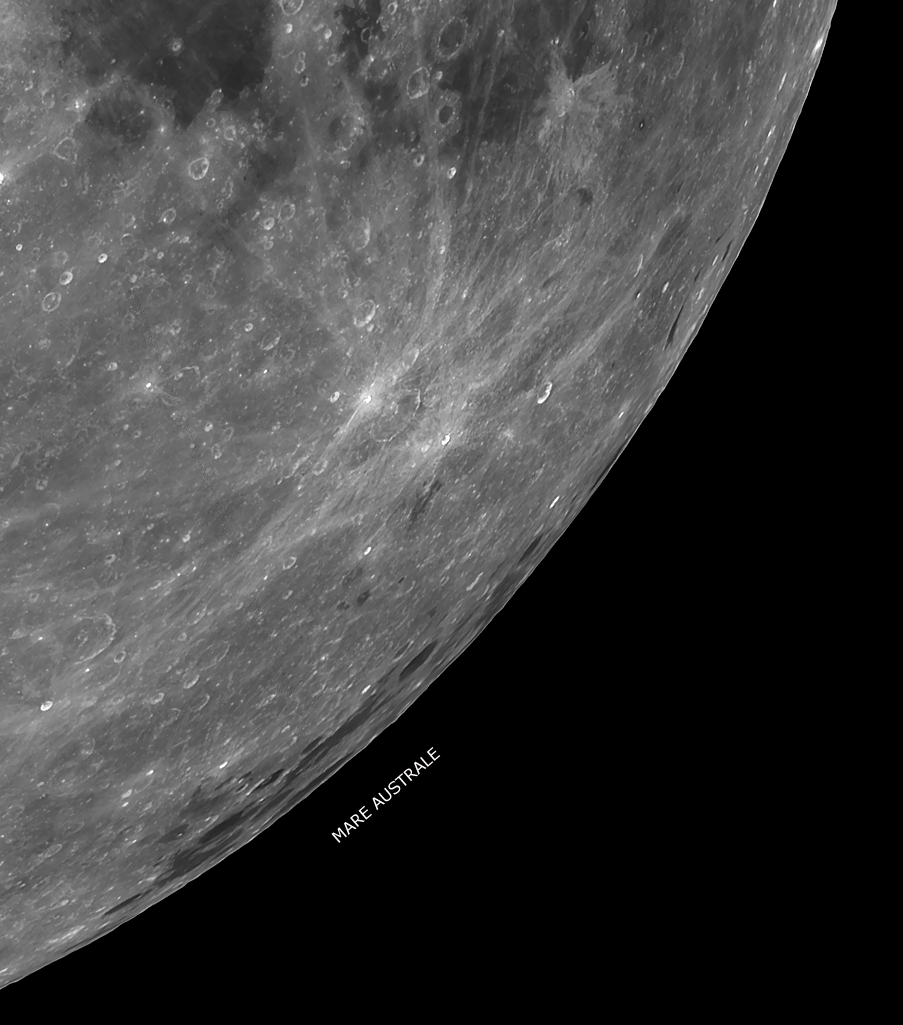 which can be clearly seen in our image. Only the South Pole Aitken basin (far