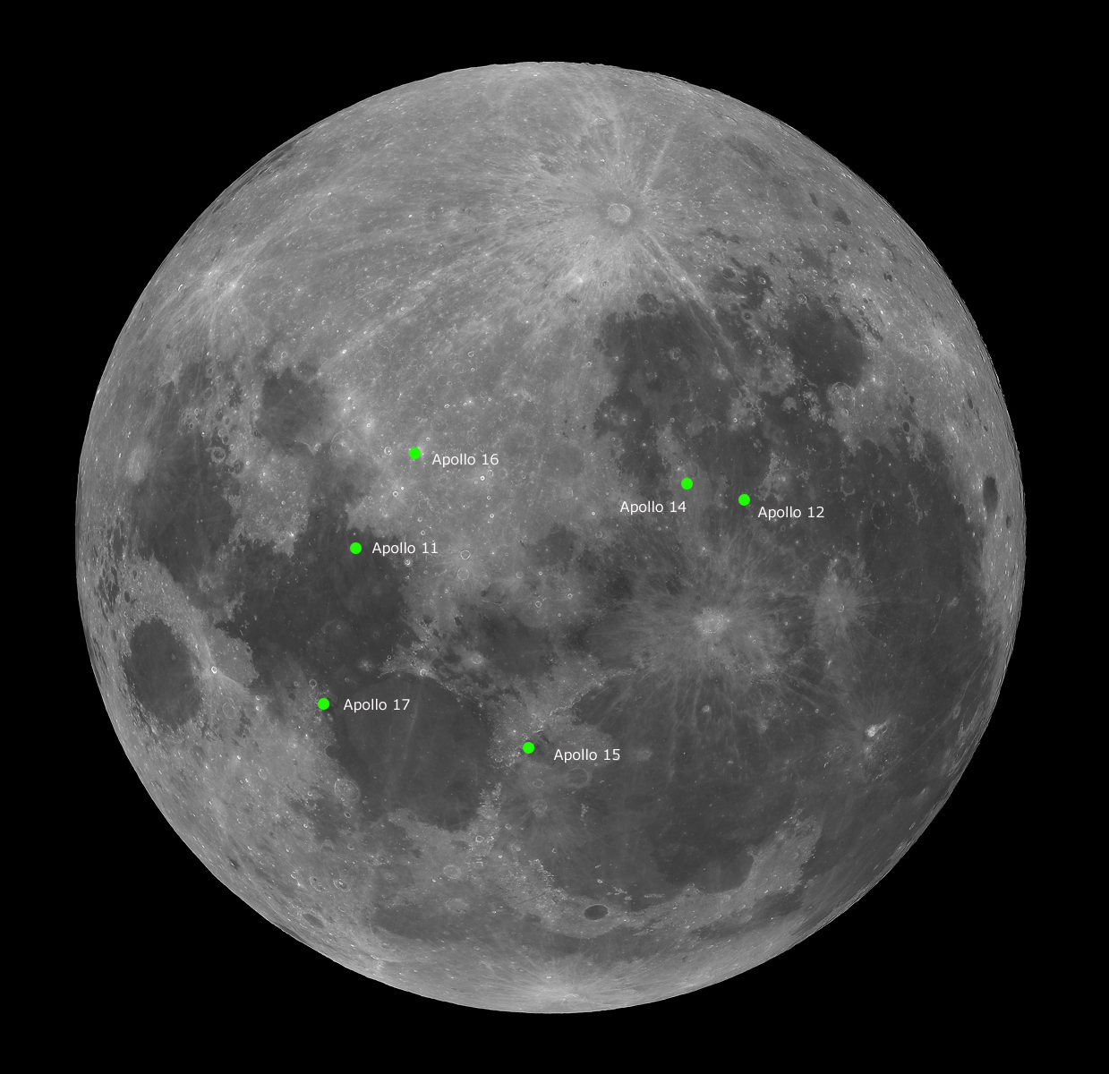 of the full moon with all Apollo landing sites.