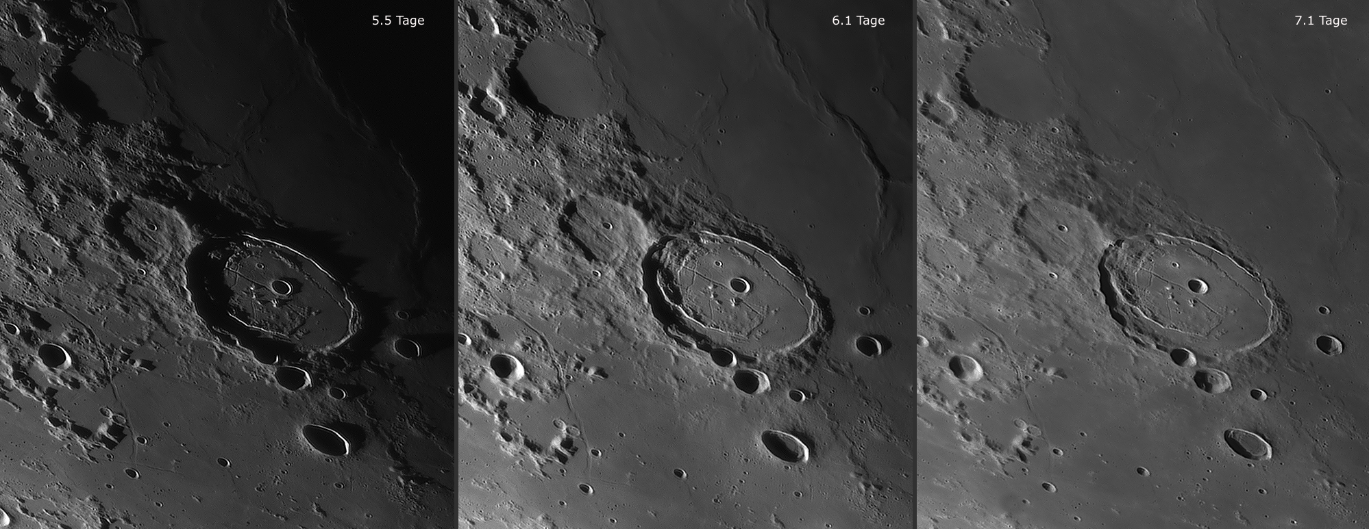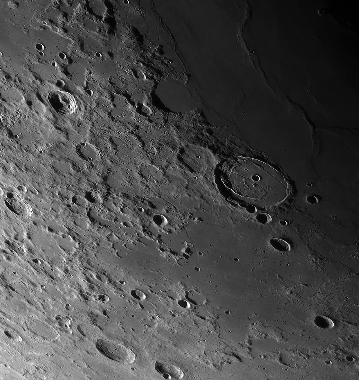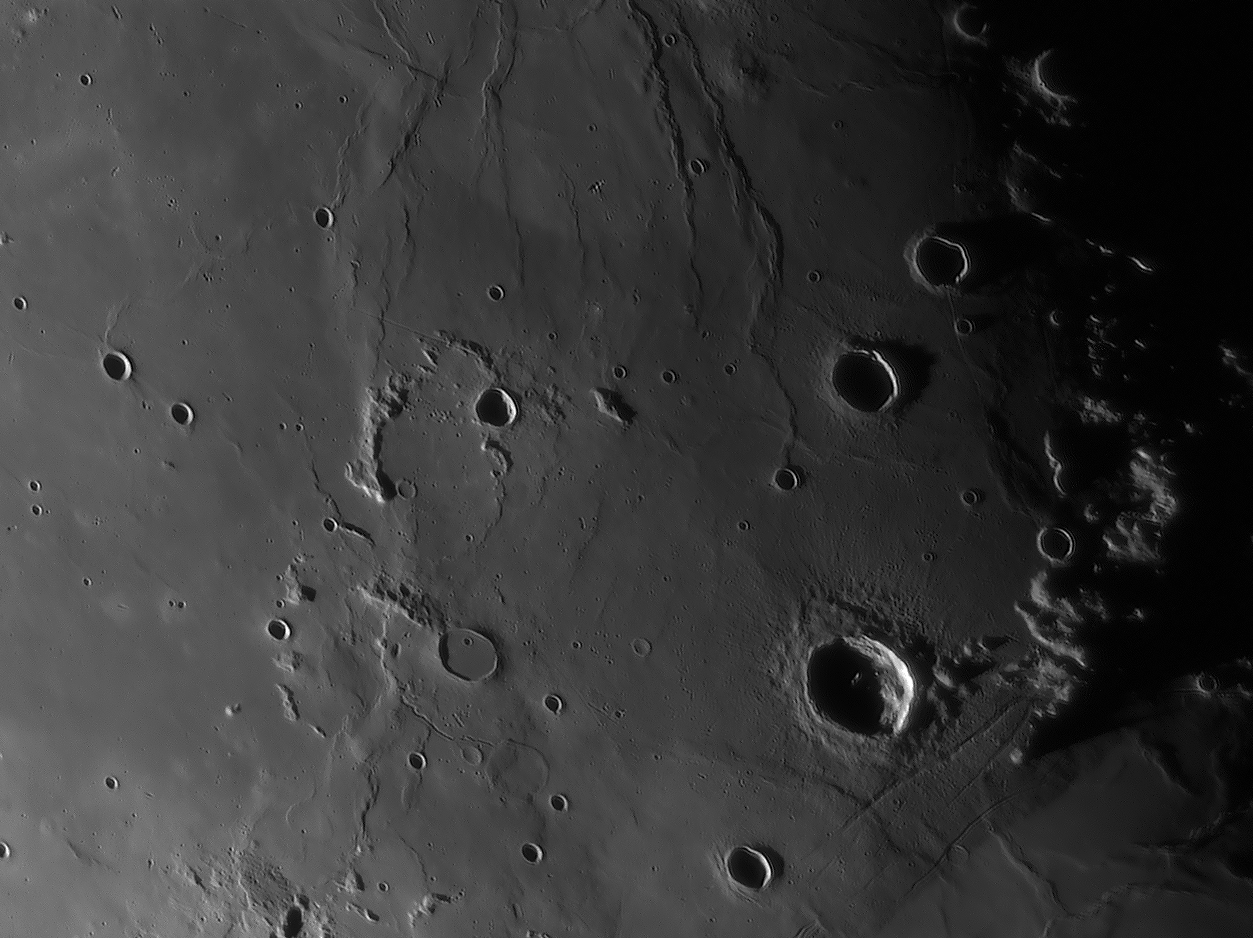 Catharina at sunrise, secondary craters in the Tycho-ray north of