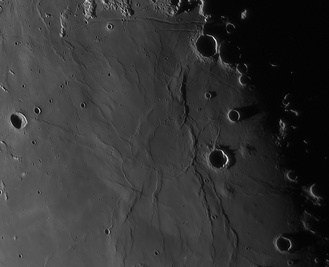 and Rima Cauchy, FF-crater Taruntius |
