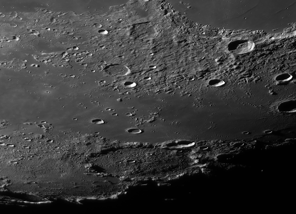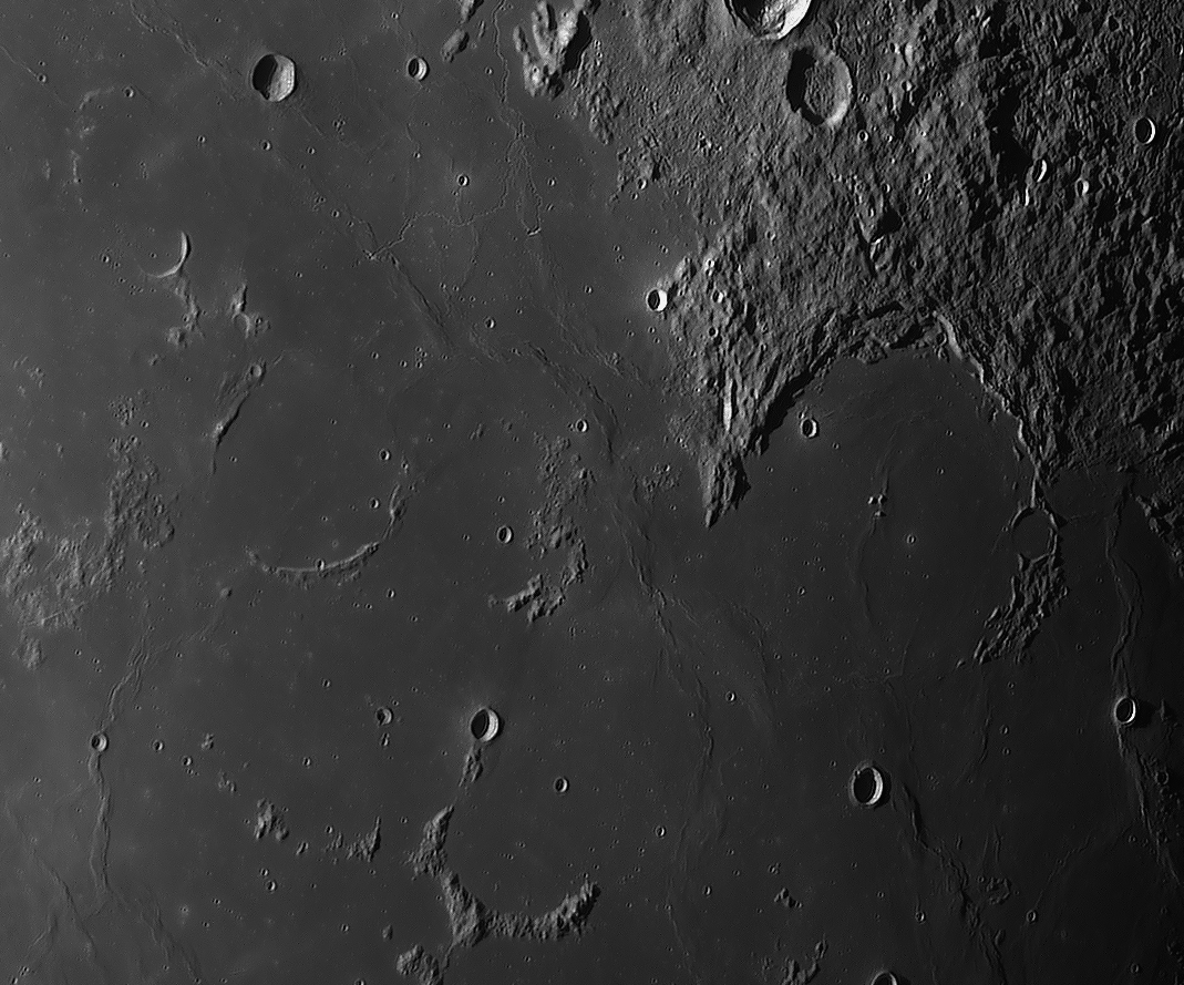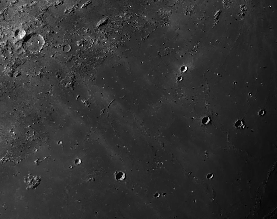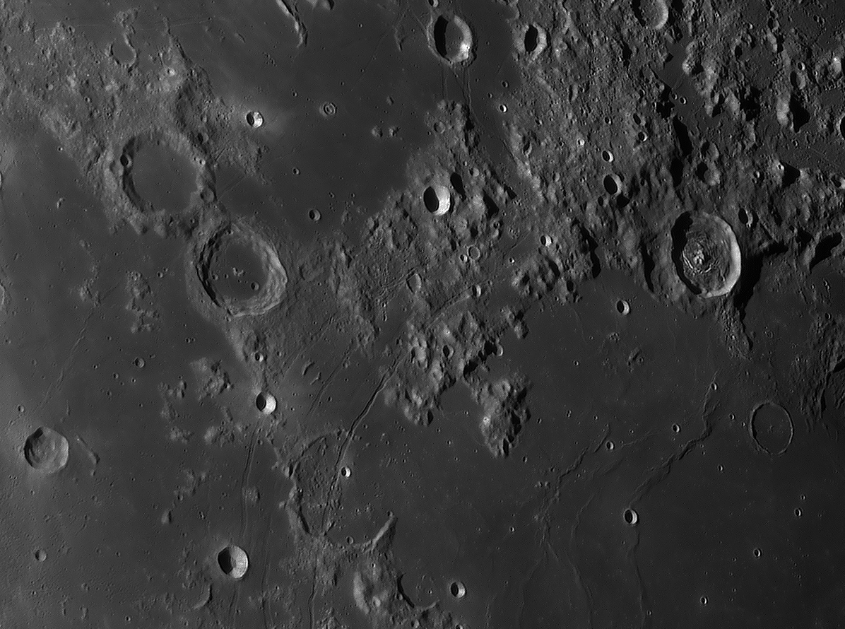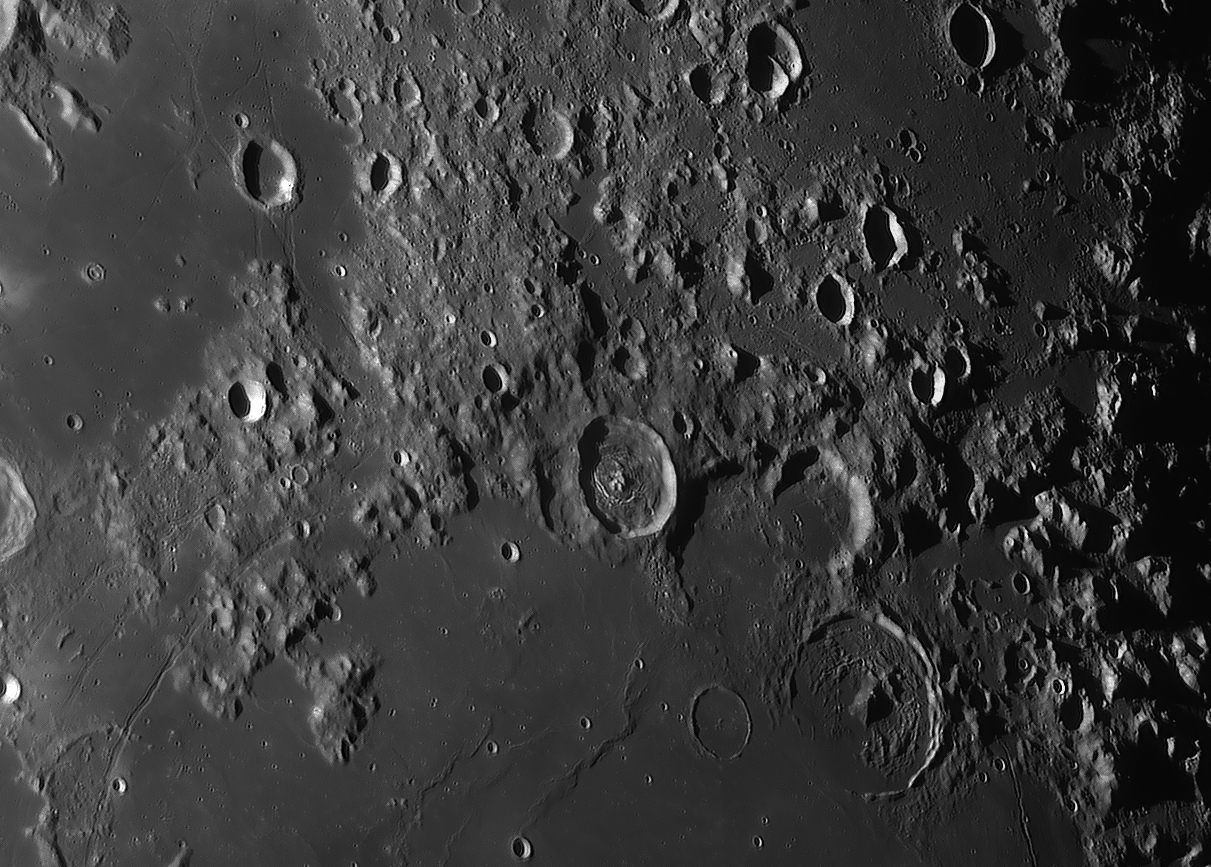 Bilddetails Das Bild 012 - zeigt das Zentrum des Mare Humorum. Im rechten Bildteil die Rima Doppelmayer und den Berghang Rupes Liebig Das Bild 016 - zeigt den einzigartigen Krater Schiller, der wohl durch einen streifenden Impakt entstanden ist Detaillierte Beschreibungen weiterer außergewöhnlicher oder einzigartigen Strukturen bei diesem Mondalter finden Sie zusätzlich in diesem pdf-file |