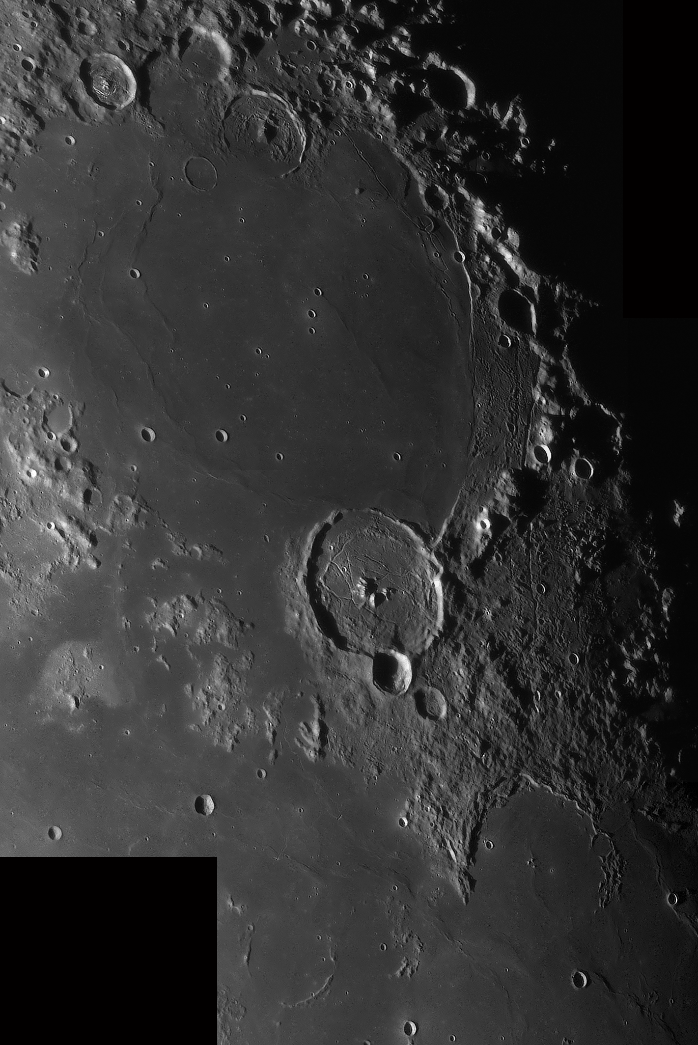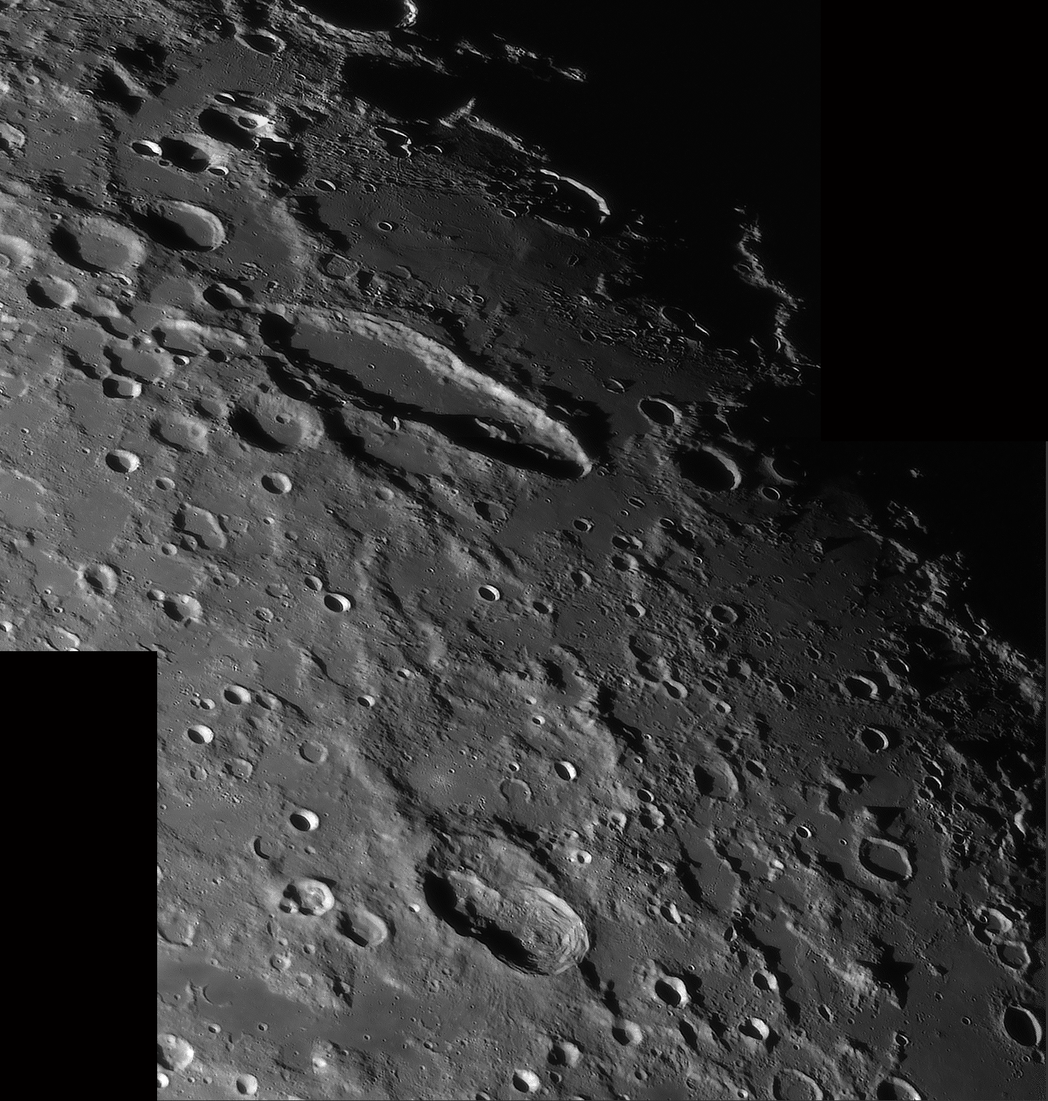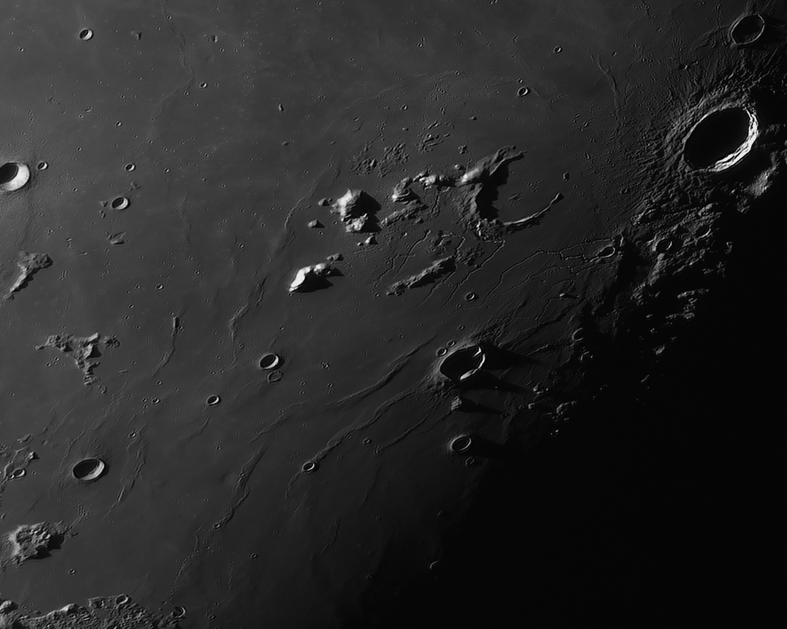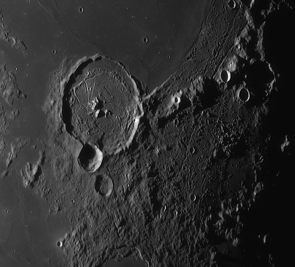 Bilddetails Das Bild 012 - zeigt das Zentrum des Mare Humorum. Im rechten Bildteil die Rima Doppelmayer und den Berghang Rupes Liebig Das Bild 016 - zeigt den einzigartigen Krater Schiller, der wohl durch einen streifenden Impakt entstanden ist Detaillierte Beschreibungen weiterer außergewöhnlicher oder einzigartigen Strukturen bei diesem Mondalter finden Sie zusätzlich in diesem pdf-file |